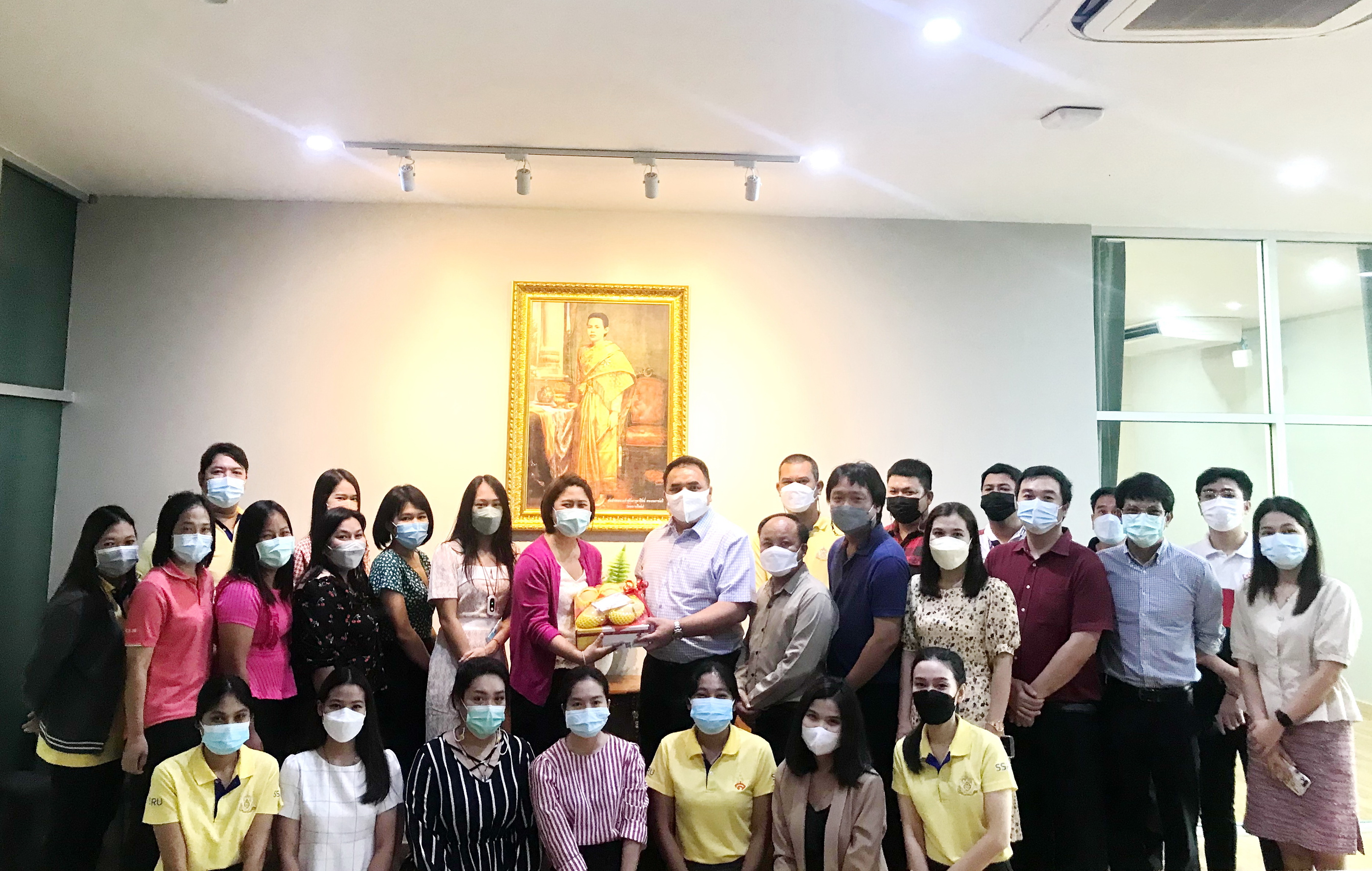April 18, 2022 Head of the office together with support personnel of the College of Logistics and Supply Chain Handing over baskets for Thai New Year (Songkran Year 2022) to Assistant Professor Dr. Komsan Somanawatra, Vice President of Nakhon Pathom Campus and Dr. Chatrat Hotawaisaya, Dean of the College of Logistics and Supply Chain.