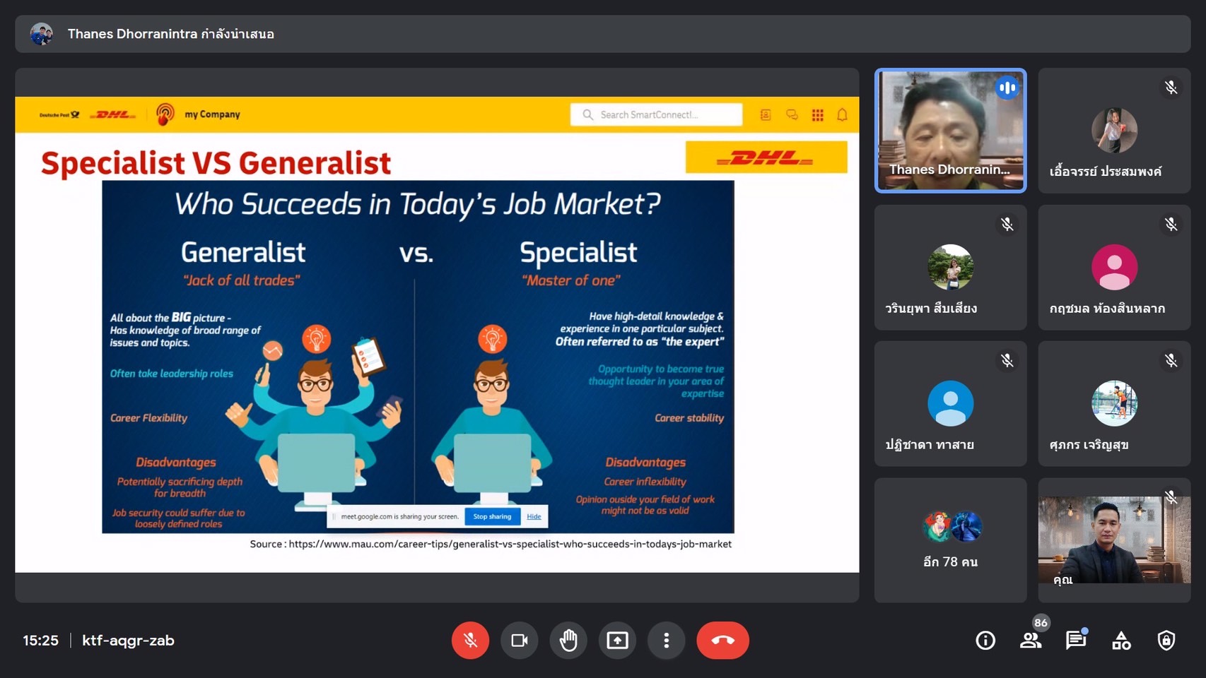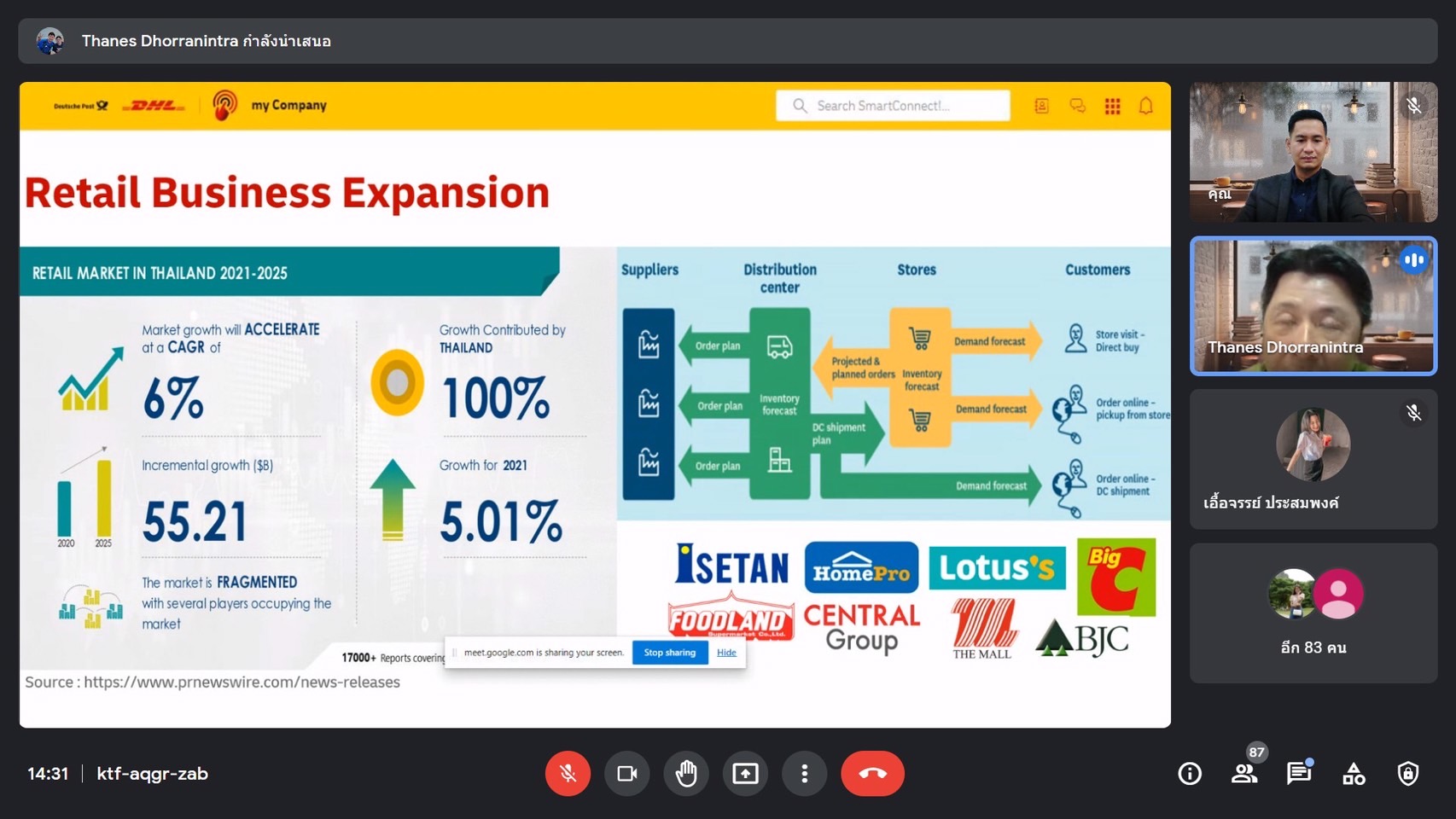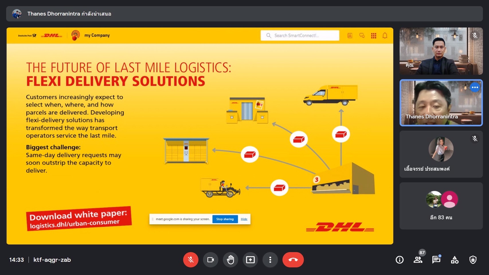 May 25, 2022 College of Logistics and Supply Chain by the field of air freight management Organize lecture activities on the topic "Prepare logistics career On the day when the world changes” which was honored by Mr. Thanet Thanin, Senior Director of Transportation Department of DHL Supply Chain (Thailand) Co., Ltd. as a speaker for this lecture. in online format via Google Meet