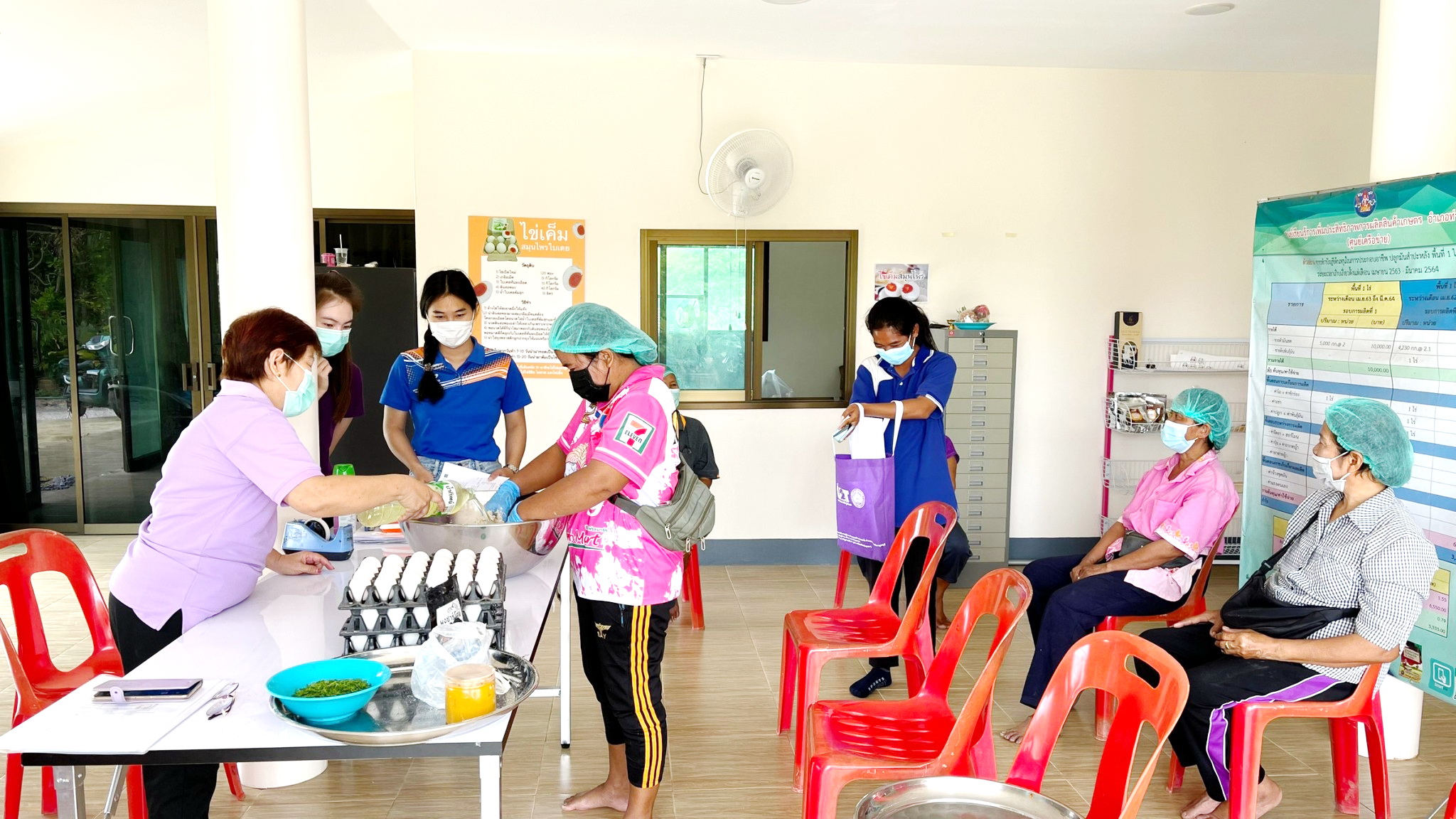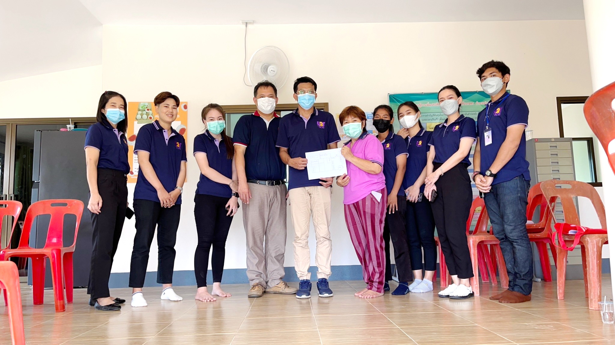 College of Logistics and Supply Chain by Associate Dean for Research and Academic Services and Associate Dean for Special Affairs Project Implementation Team Has organized a training to drive economic and social foundations after Covid with the economy of BCG (U2T) in phase 2 (U2T For BCG) herbal salted egg products Ban Rai Hom Rak, Phang Tru Subdistrict, Tha Muang District, Kanchanaburi Province By extending product processing and brand design to communicate the herbal salted egg products. Baan Rai Hom Rak During the past phase 1 and phase 2 has promoted the product to enter the development standard. Upgrading the quality of herbal salted egg products By visiting the area this time, it is a knowledge transfer by GMP workshop for the location and requesting the FDA number (for herbal salted egg products. Ban Rai Hom Rak) with GMP 420 testing and regulatory checks for food production facilities. as well as self-assessment And in this regard, the project implementation team Has designed and adjusted the plan for permission of the production site. to prepare for applying for permission FDA, salted egg, herbs Baan Rai Hom Rak By the end of September 2022, to increase the potential and competitiveness of the BCG manufacturing and services sectors in the area with knowledge technology and innovation and cause cooperation and unity in the community and can be used to build a career continue to generate income for the family