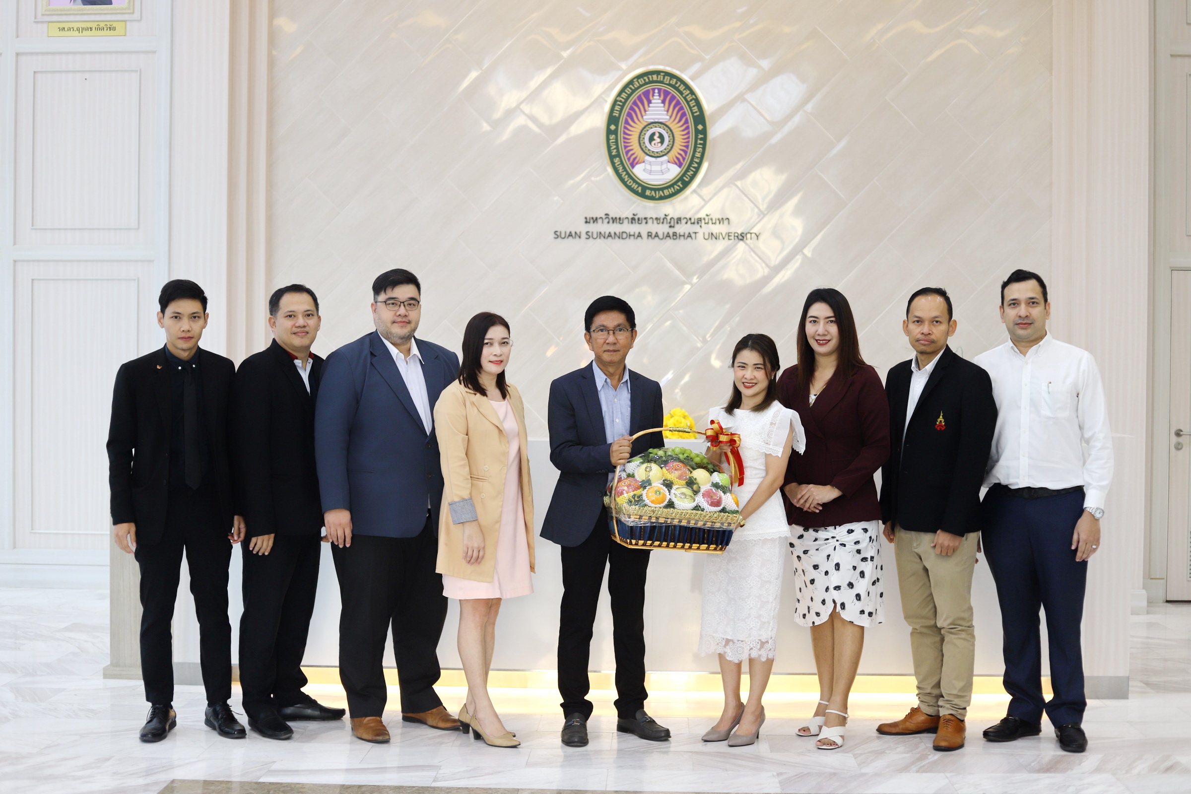 College of Logistics and Supply Chain Suan Sunandha Rajabhat University by the Dean and the management team Giving a souvenir on the occasion of the birthday to the President of the Council of Suan Sunandha Rajabhat University at the hall on the 1st floor of the Office of the President. Suan Sunandha Rajabhat University