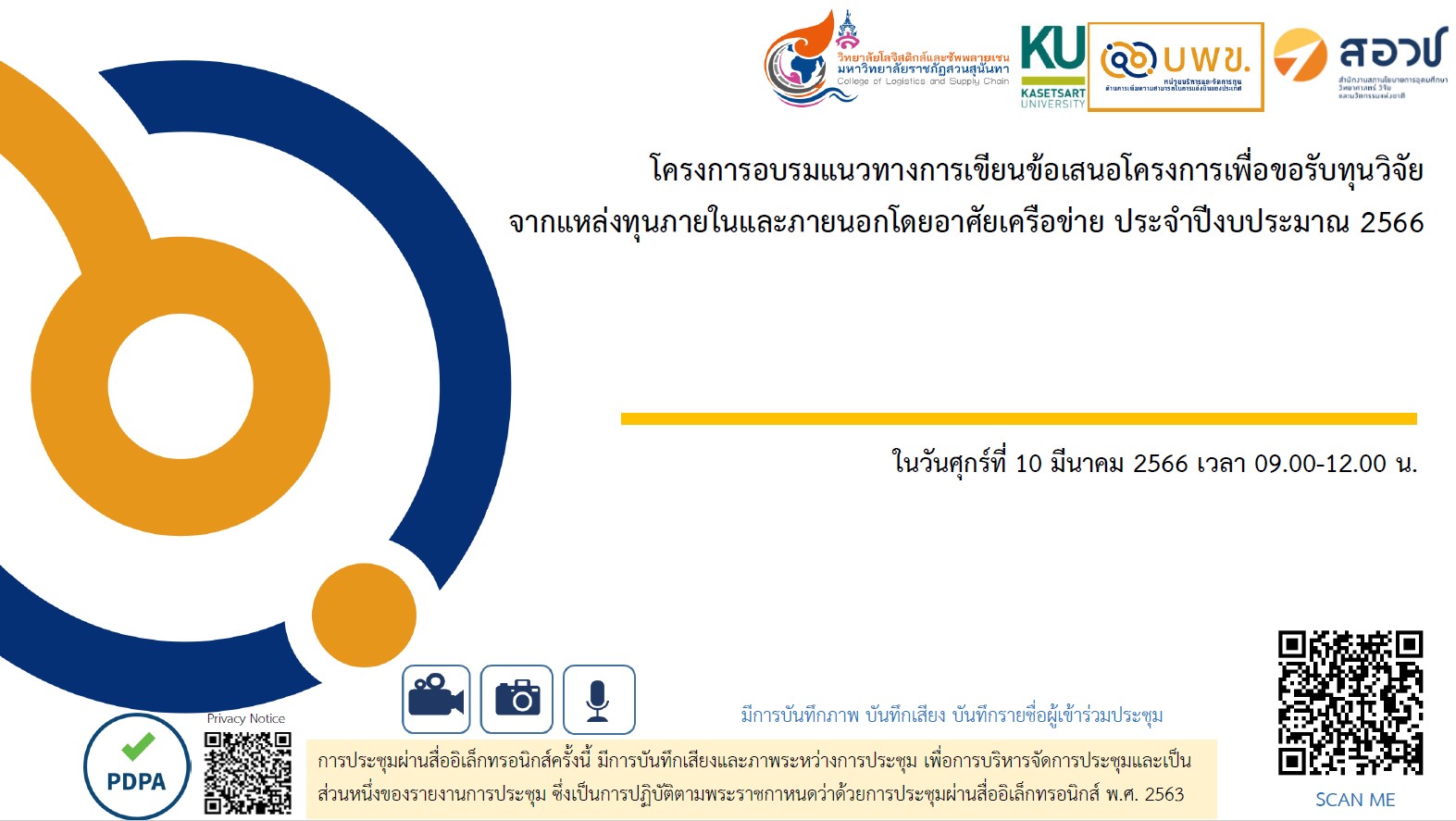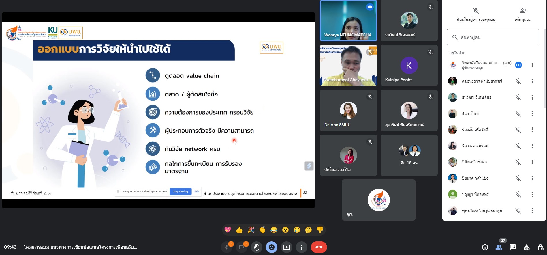 Associate Dean for Research and Academic Services lead the management team and teachers participated in a training on how to write project proposals for research funding from internal and external funding sources by using the network Fiscal Year 2023, with the Dean of the College of Logistics and Supply Chain Presided over the opening of the project and was honored by experts from Kasetsart University come to join as a speaker in this lecture in the form of an online meeting via electronic media