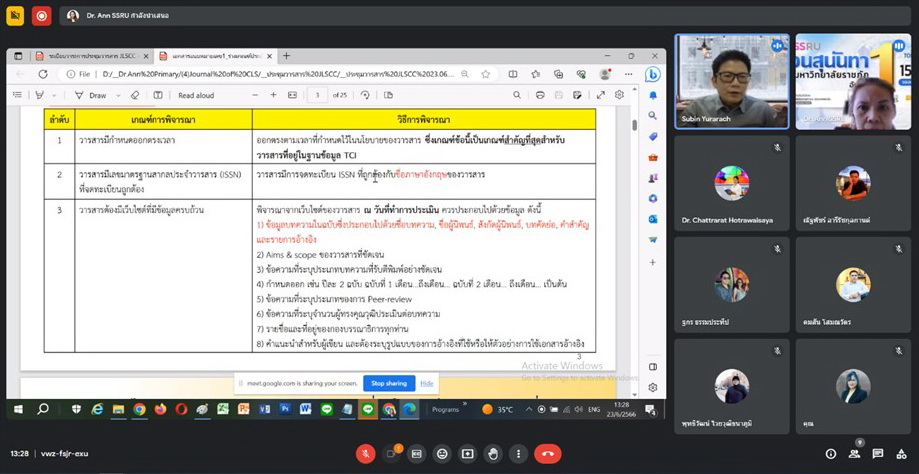 Journal of Logistics and Supply Chain College: JLSCC Online ISSN: 2651-1622, Print ISSN: 2408-2740 (TCI Group 1) held an editorial meeting of the journal. On Friday, June 23, 2023 at 1:00 p.m. Online via Google Meet to discuss the main issues of preparation for TCI's assessment for the end of 2024 and content management on the website of TCI. journal