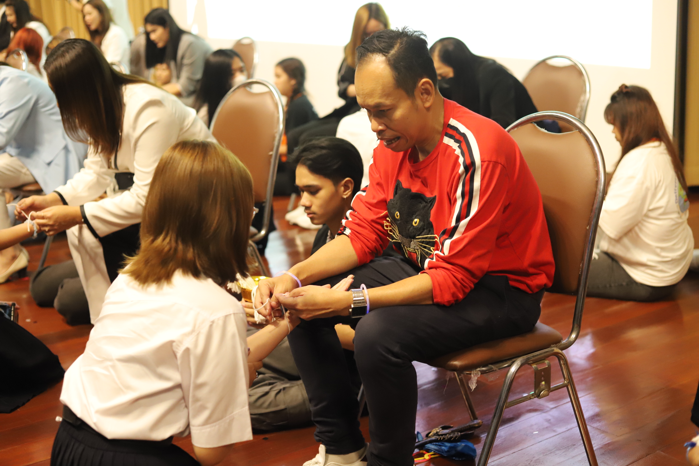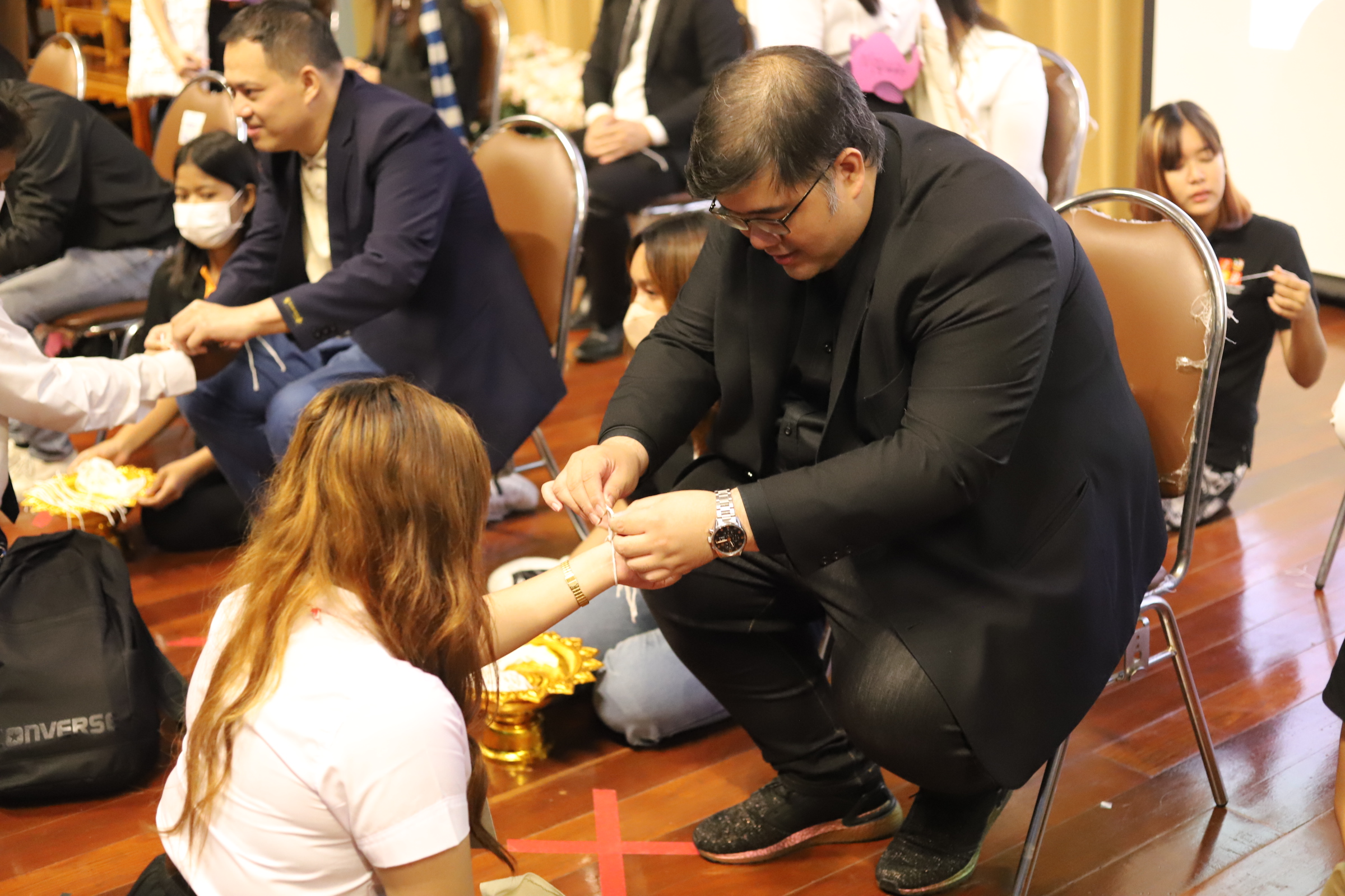 College of Logistics and Supply Chain, led by the dean, along with the management team and faculty members, joined the wristband to welcome new students to "Wang Kamphaeng Daeng Logistics Suan Sunandha" at the auditorium of the multipurpose building, 2nd floor, Rajabhat University. Suan Sunandha Nakhon Pathom Campus