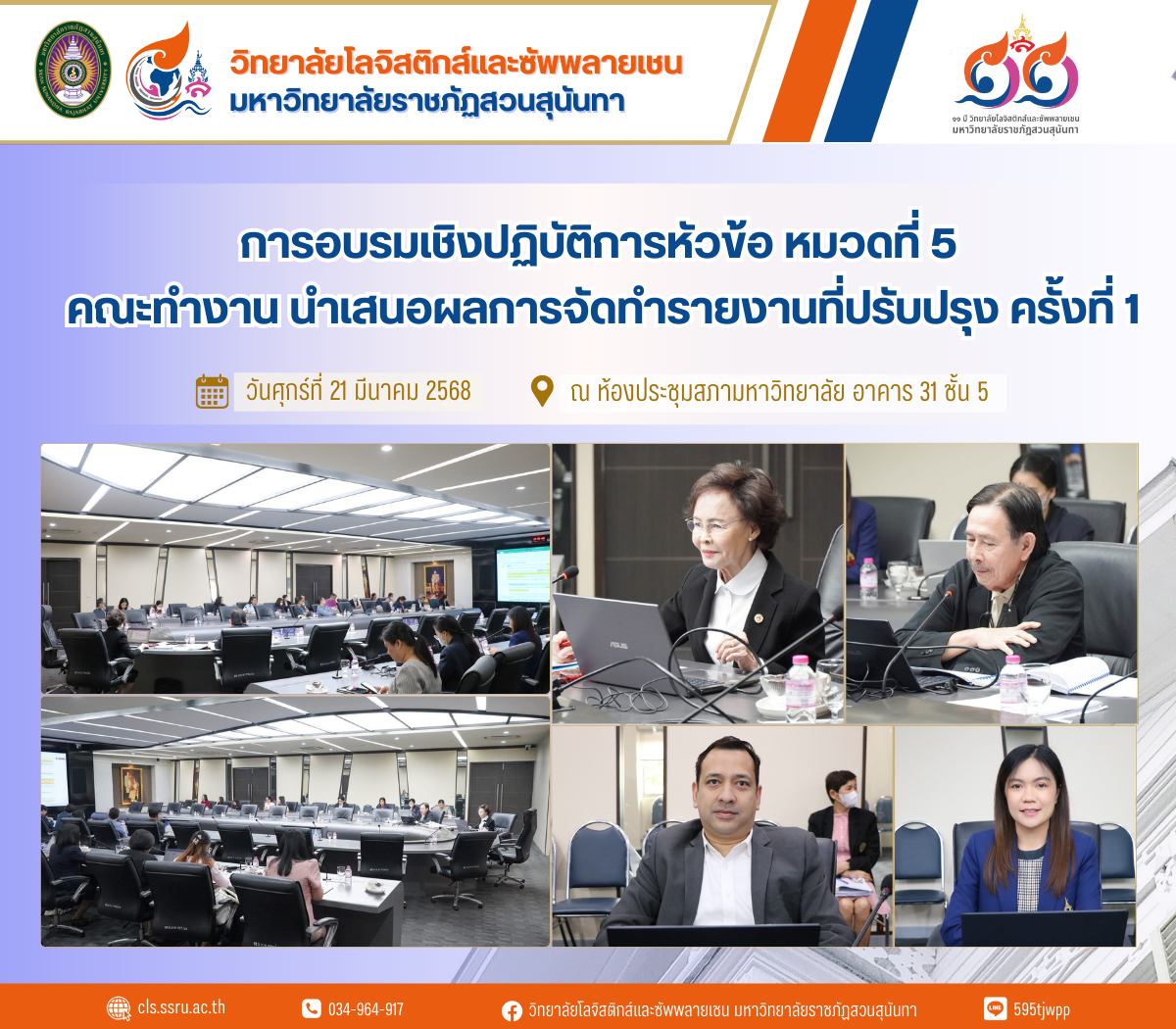 The College of Logistics and Supply Chain, led by Assistant Professor Dr. Mano Prachayaphiphat, Deputy Dean for Business Development and Revenue Generation, along with Ms. Sasivimon Maniwong, Head of the College Office, participated in the workshop on the topic of “Section 5: Working Group Presents the Results of the First Updated Report, Reviewed by Advisors, and Provides Recommendations for Improvement” at the institutional level for the academic year 2024, honored by Asst. Prof. Phatthanachai Kulsirisawat and Asst. Prof. Phano Charoensiri as speakers.