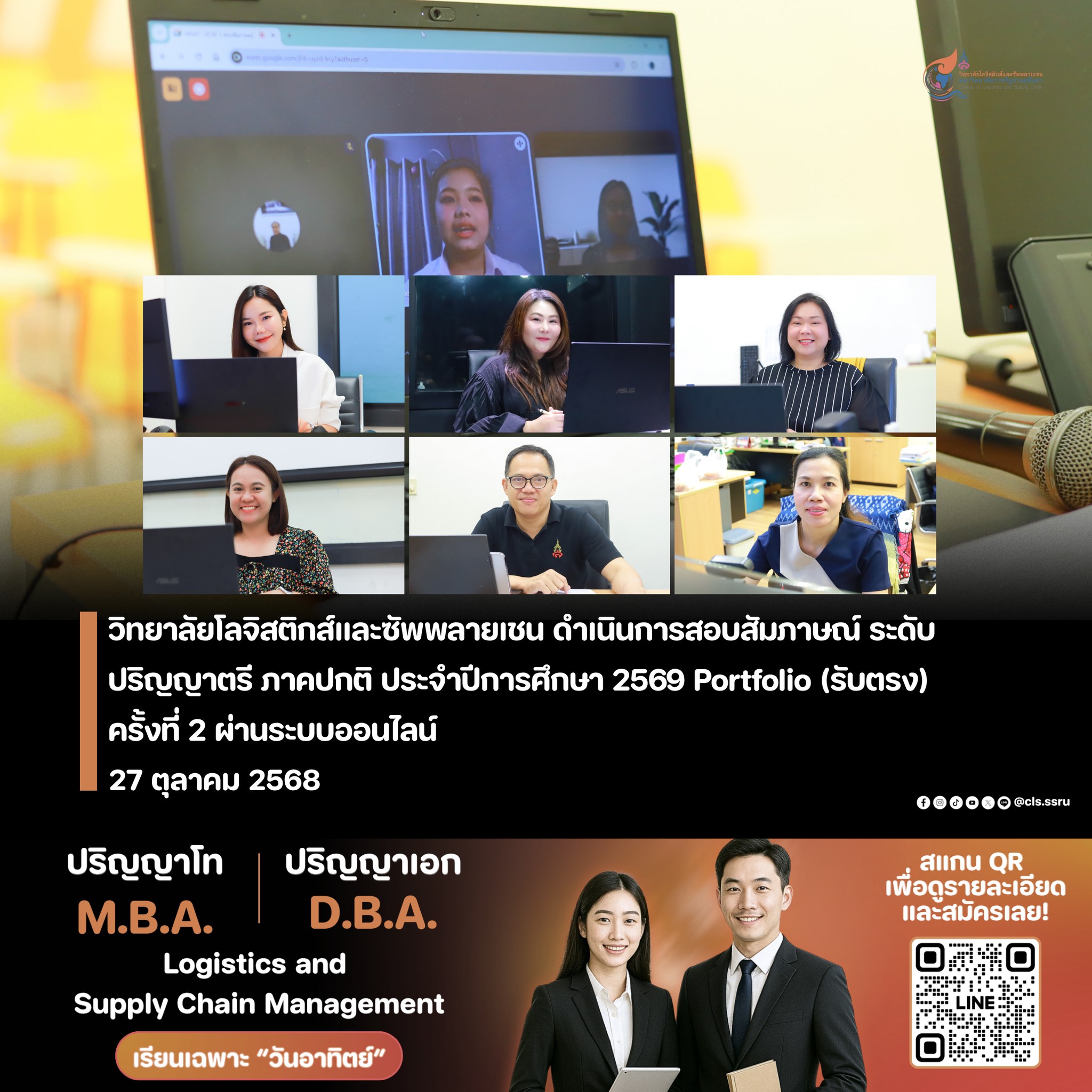 The interview attracted a large number of students and was conducted in a smooth and pleasant atmosphere. A panel of qualified judges assessed applicants' skills and suitability. The selection results will be announced on the website https://admission.ssru.ac.th/
