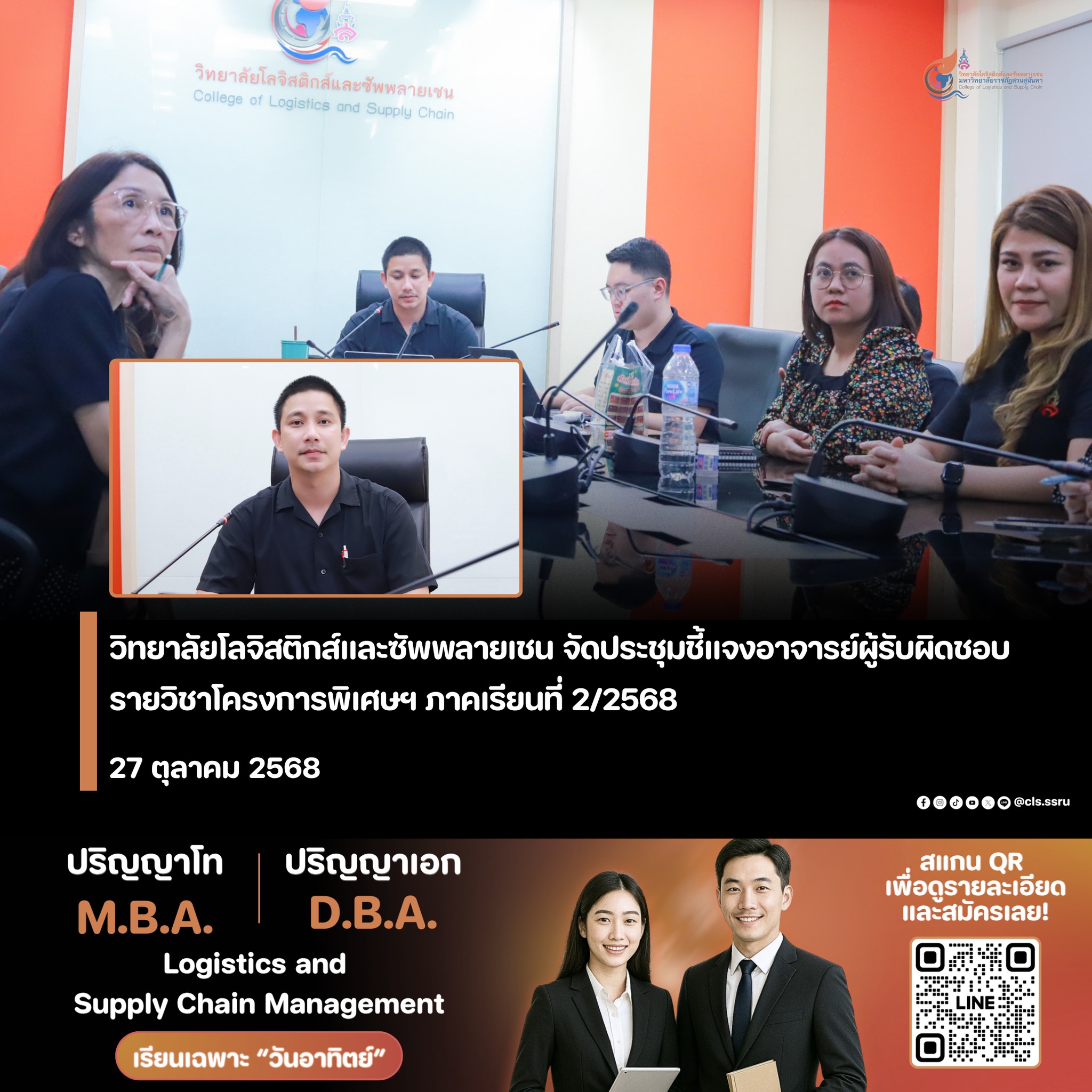 On October 27, 2025, the College of Logistics and Supply Chain, Suan Sunandha Rajabhat University, led by Dr. Lampai Trakulsanti, Deputy Dean for Academic Affairs, organized a briefing meeting for instructors responsible for special project courses for the second semester of 2025. This meeting aimed to enhance understanding of the procedures.