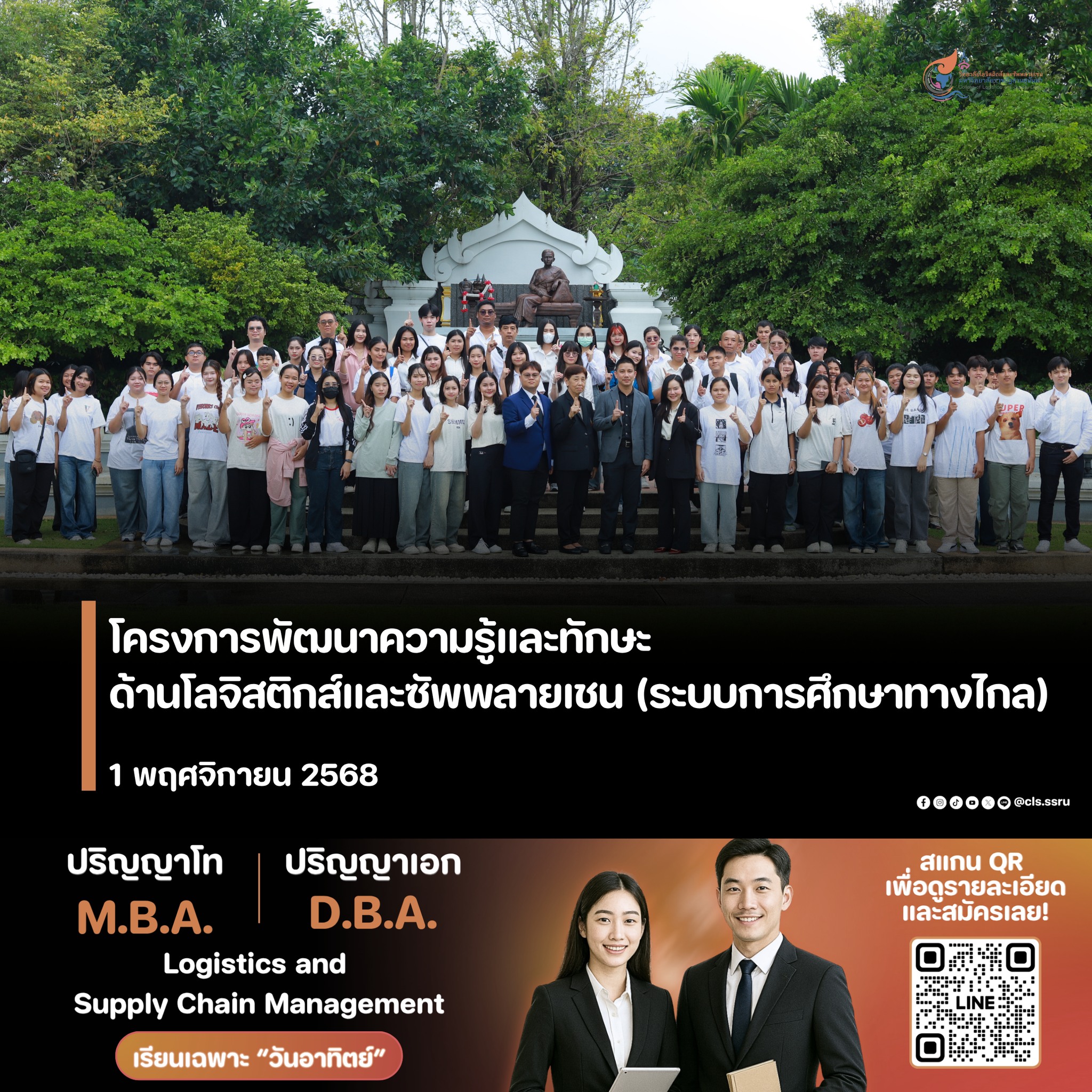 The College of Logistics and Supply Chain, Suan Sunandha Rajabhat University, organized the Logistics and Supply Chain Knowledge and Skills Development Project for the 2025 academic year for Logistics and Supply Chain Management students (Distance Education System). Lecturer Nipawan Phuchom, Head of the program, along with faculty members and student clubs, participated in the activities and facilitated the students participating in the project.