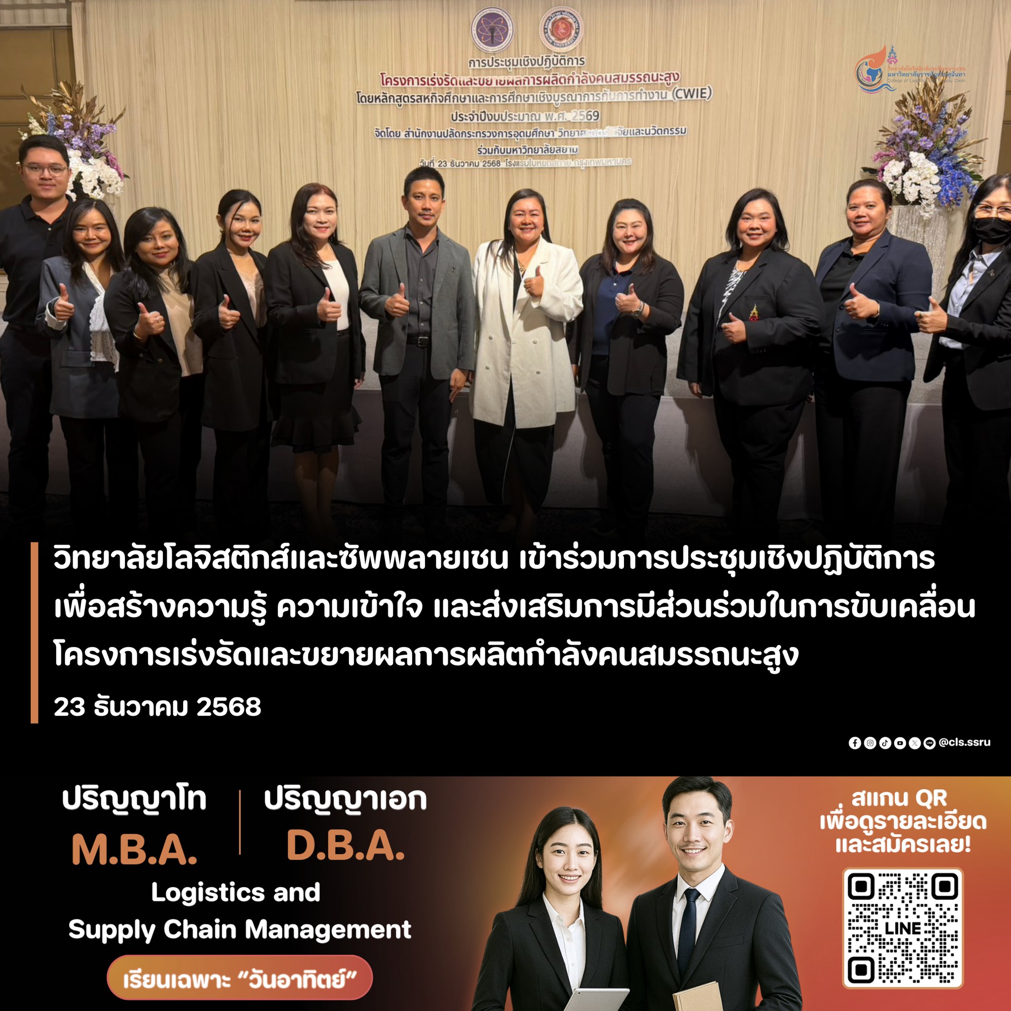 The College of Logistics and Supply Chain, Suan Sunandha Rajabhat University, led by Dr. Lamphai Trakulsanti, Deputy Dean for Academic Affairs, along with faculty members from the college, participated in a workshop to build knowledge, understanding, and promote participation in driving the accelerated and expanded project for producing high-skilled manpower using cooperative education and work-integrated education (CWIE) in the fiscal year 2026.