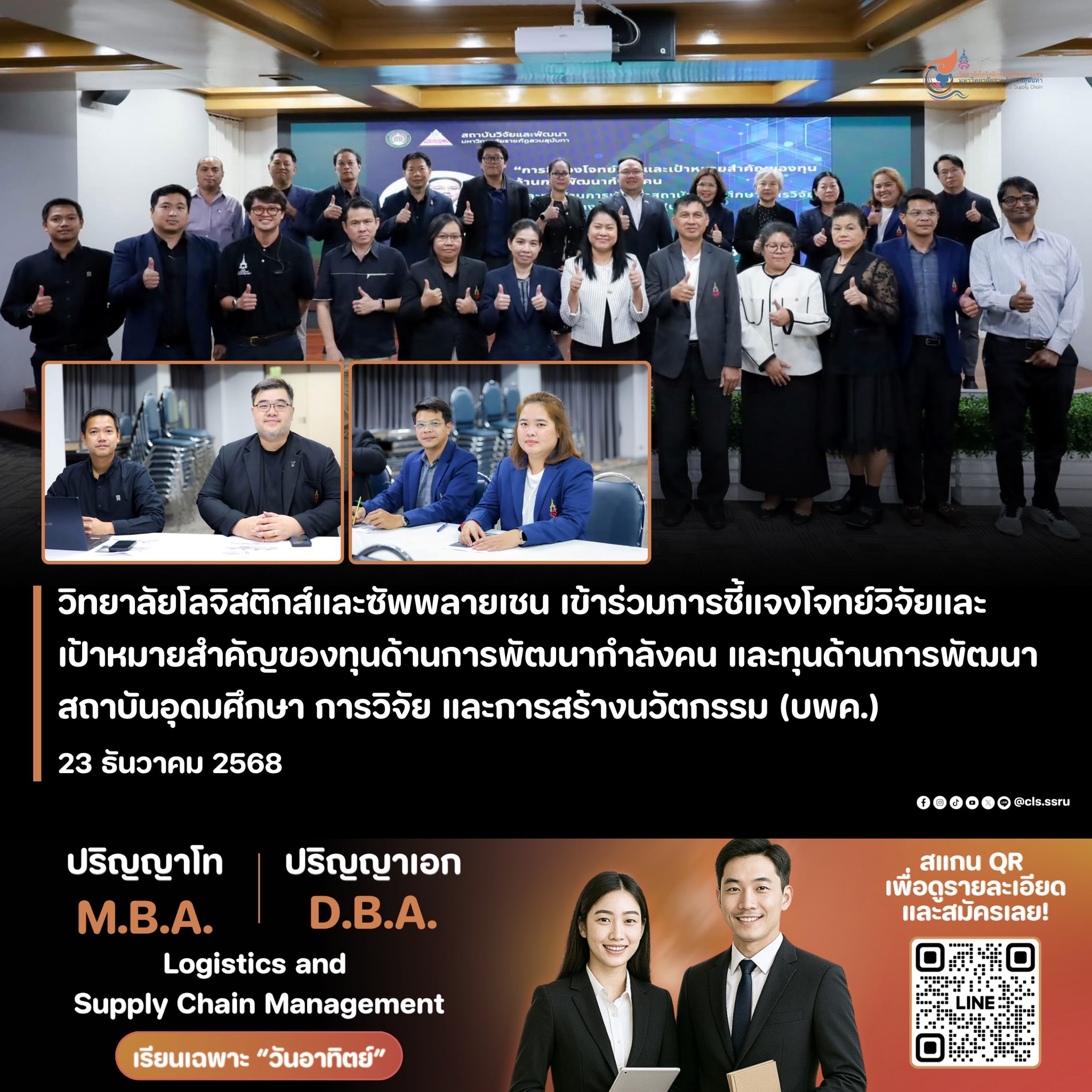 the College of Logistics and Supply Chain, Suan Sunandha Rajabhat University, led by Dr. Puttiwat Waiwutthana Phum, Deputy Dean for Research and Development, along with faculty and relevant personnel, participated in a briefing on research topics and key objectives of the Human Resource Development Fund and the Fund for the Development of Higher Education Institutions, Research, and Innovation (PMU).