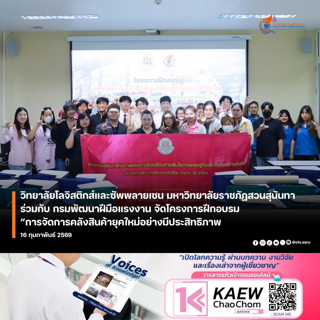 The College of Logistics and Supply Chain, Suan Sunandha Rajabhat University, in collaboration with the Department of Skill Development, specifically the Nakhon Pathom Skill Development Institute 16, organized the training program “Efficient Modern Warehouse Management” from February 16-20, 2026.