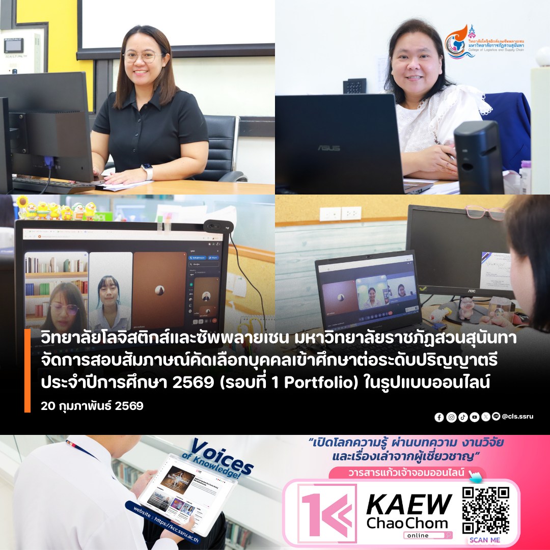 The College of Logistics and Supply Chain, Suan Sunandha Rajabhat University, will conduct online interviews for the selection of applicants for undergraduate studies in the academic year 2026 (Round 1 Portfolio).