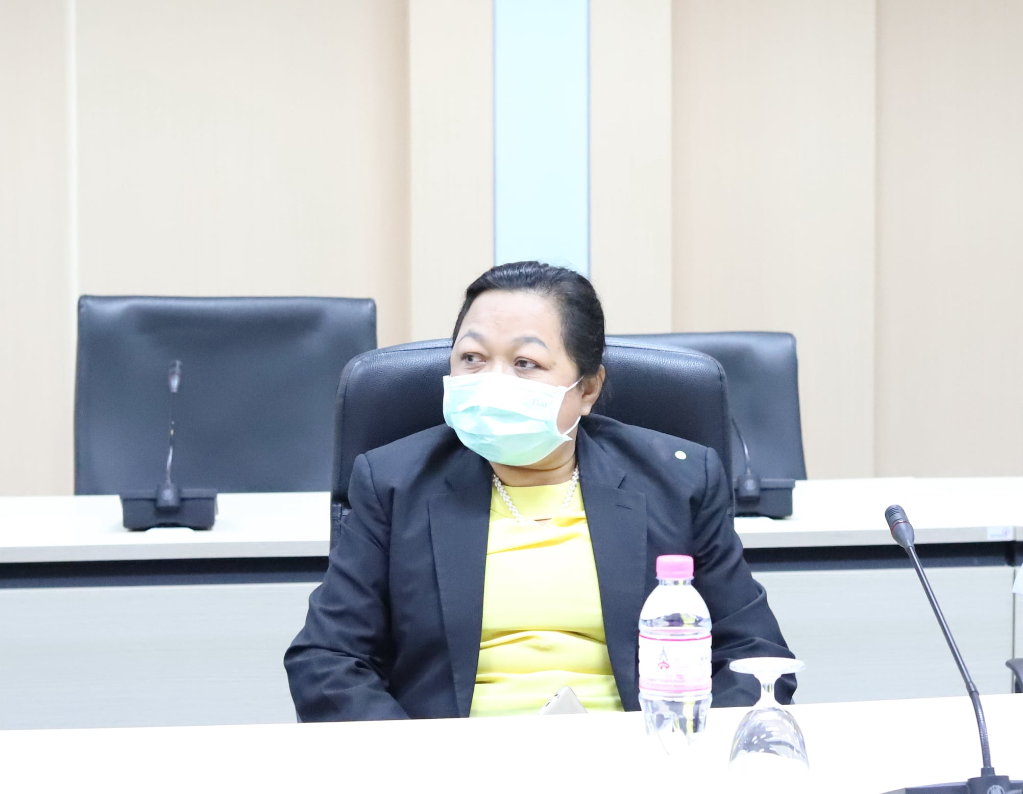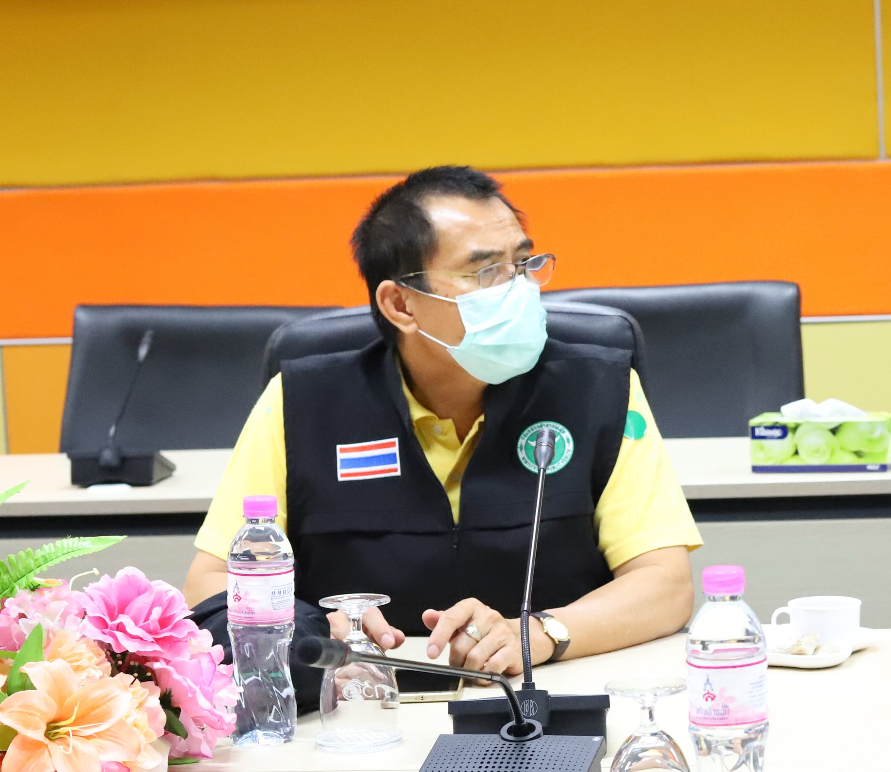 Asst.Prof.Dr.Komson Sommanawat, Dean of College of Logistics and Supply Chain, gave the warm reception to the committee from Nakorn Pathom province as they visited College of Logistics and Supply Chain to check the COVID-19 protection procedure of the college.