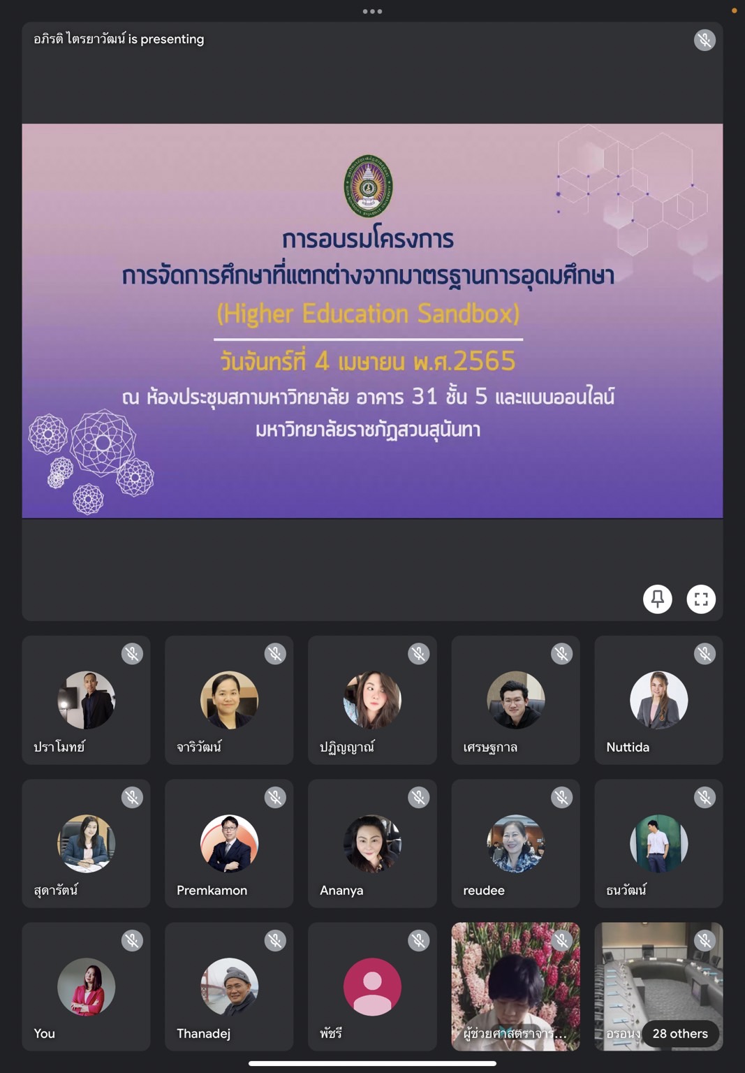 On April 4, 2022, Dr. Chatrat Hotawaisaya, Dean of the College of Logistics and Supply Chain attend the training an educational management project that differs from the higher education sandbox standards, with President of Suan Sunandha Rajabhat University presided over the opening of the project and was honored by Associate Professor Dr. Yuttana Chapphanrat is a lecturer in the training at the University Council Meeting Room, Building 31, 5th floor and through the online training system Google Meeting.