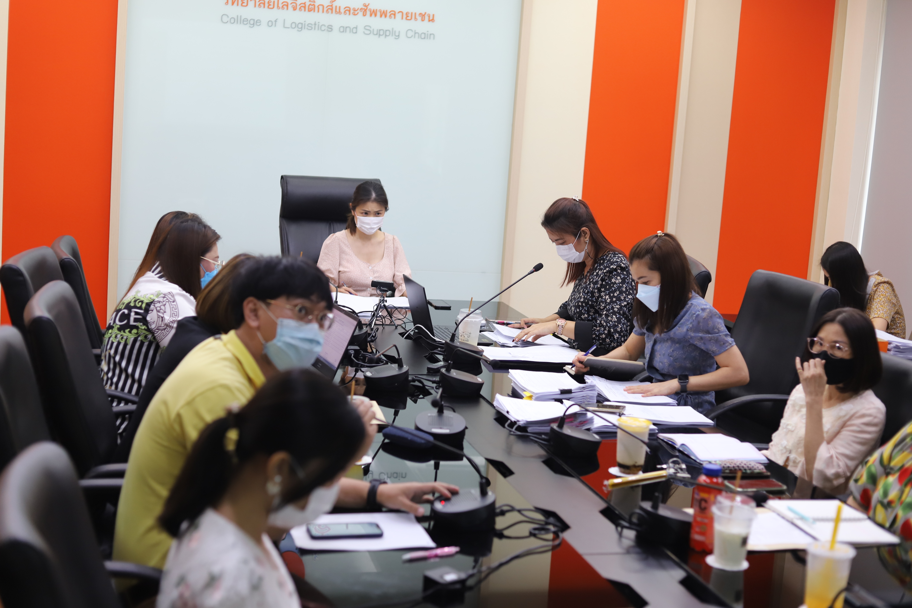 On April 11, 2022, Dr. Chattrarat Hotrawaisaya, Dean of the College of Logistics and Supply Chain Chairing the meeting of the Academic Administration Subcommittee College of Logistics and Supply Chain No. 4/2022 Agenda for consideration : Approval of academic results for semester 2/2021 together with executives, heads of branches/disciplines and the chairman of the special project at the meeting room, 1st floor, College of Logistics and Supply Chain and in online format via Google Meet.