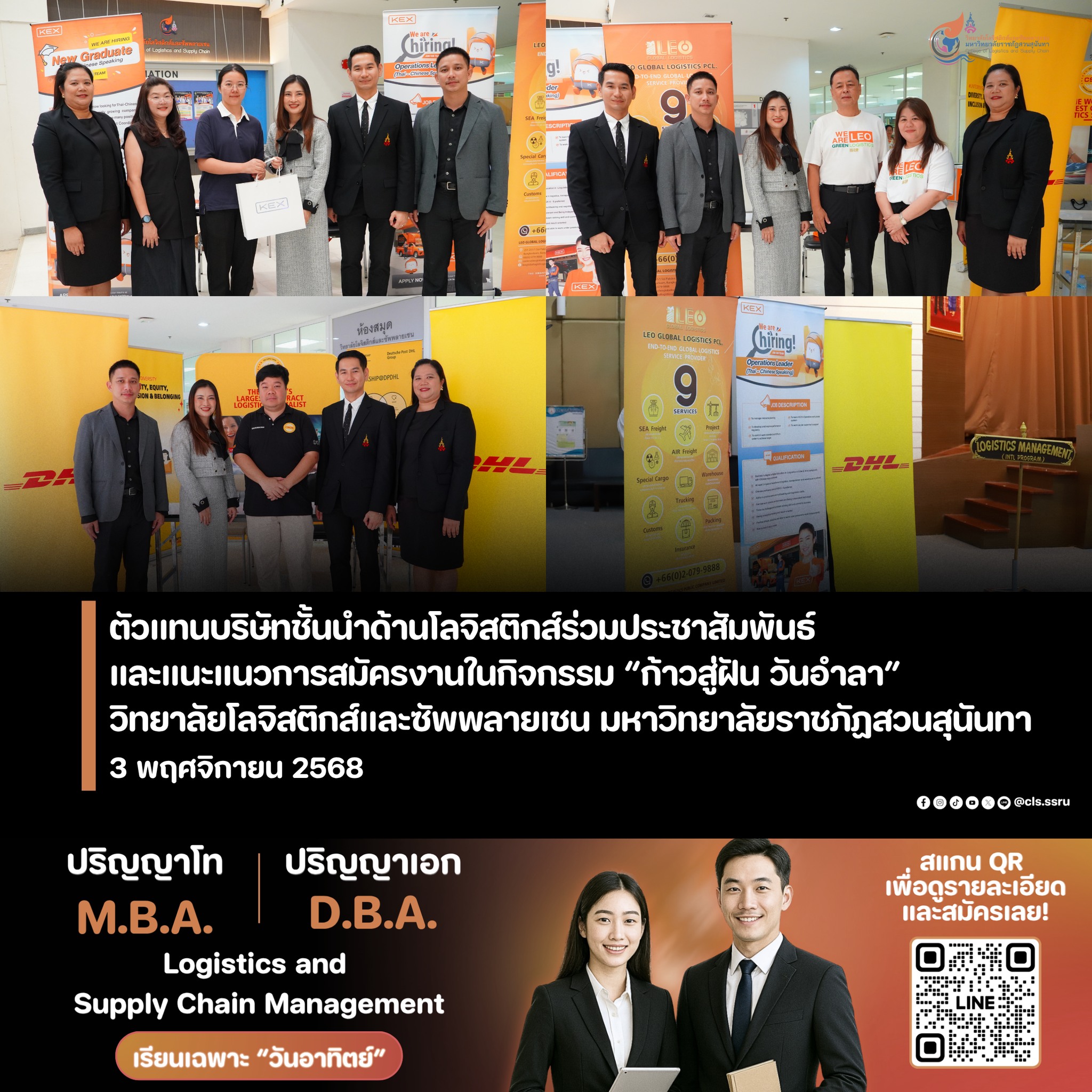 The College of Logistics and Supply Chain, Suan Sunandha Rajabhat University, Nakhon Pathom Campus, organized the "Farewell Day" orientation for students for the 2025 academic year. This event aimed to prepare students for graduation and promote confidence in entering the labor market.