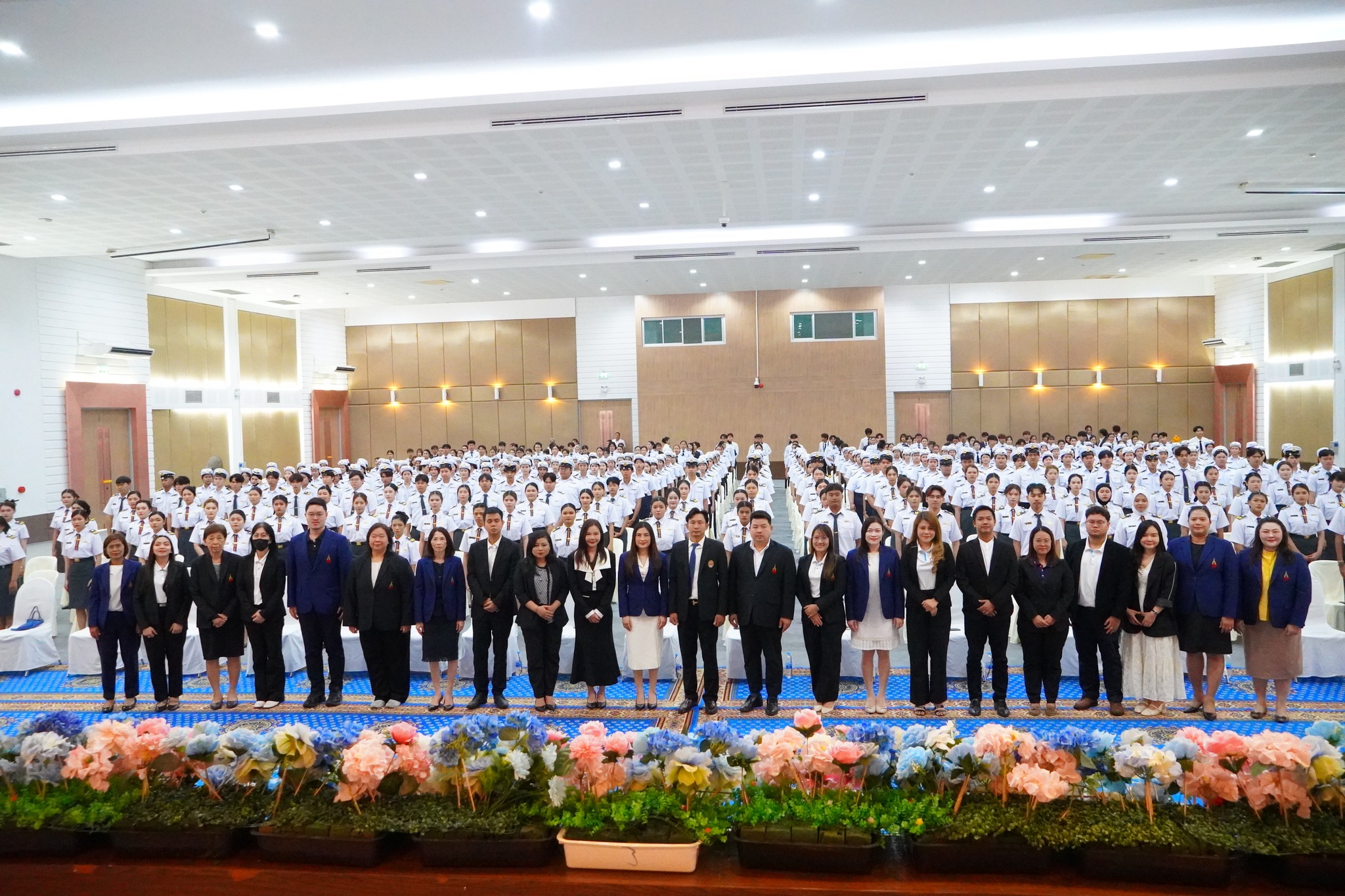 The ceremony was presided over by Assistant Professor Dr. Kaenphet Saranonthawat, Vice President of the Nakhon Pathom Campus, who presented caps and insignia to the students. Assistant Professor Dr. Chanicha Moryadee, Dean of the College of Logistics and Supply Chain, delivered the opening remarks on the objectives of the event.