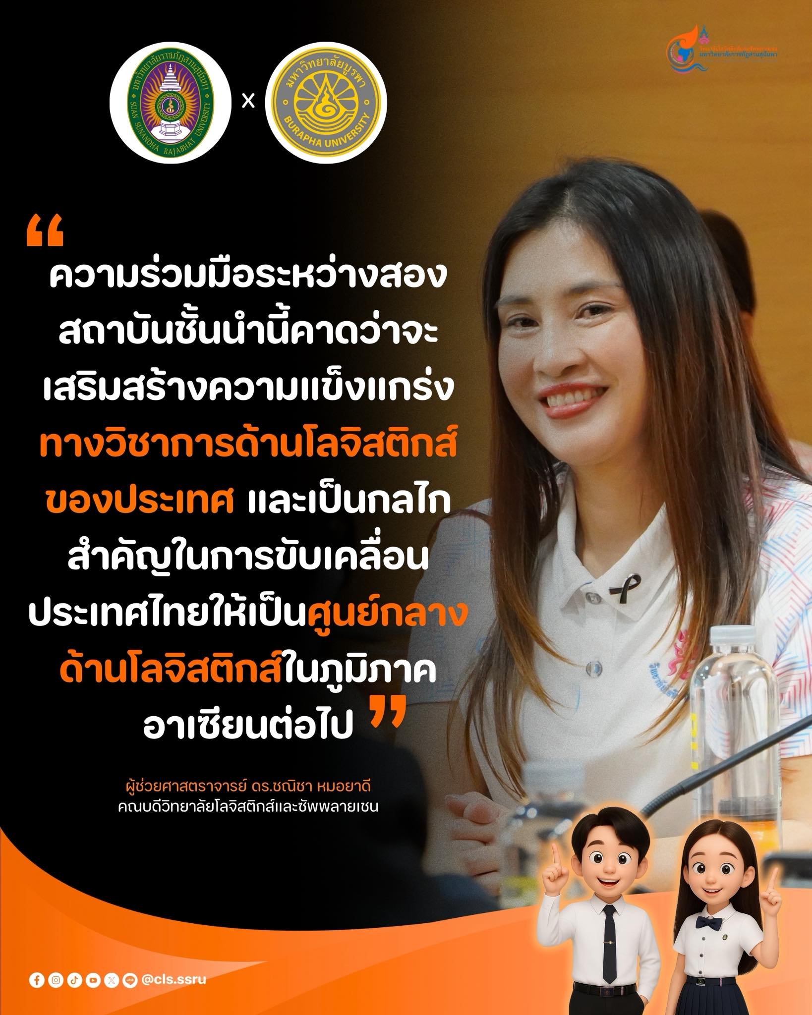 ”ความร่วมมือระหว่างสองสถาบันชั้นนำนี้คาดว่าจะเสริมสร้างความแข็งแกร่งทางวิชาการด้านโลจิสติกส์ของประเทศ และเป็นกลไกสำคัญในการขับเคลื่อนประเทศไทยให้เป็นศูนย์กลางด้านโลจิสติกส์ในภูมิภาคอาเซียนต่อไป“