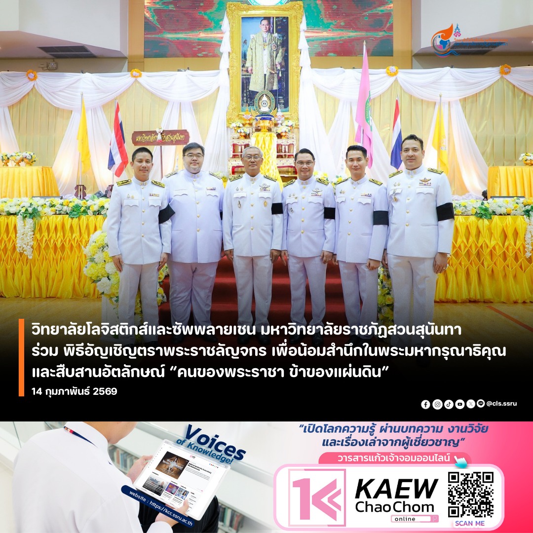 วิทยาลัยโลจิสติกส์และซัพพลายเชน มหาวิทยาลัยราชภัฏสวนสุนันทา โดยคณะผู้บริหาร คณาจารย์ บุคลากร และนักศึกษา เข้าร่วมพิธีอัญเชิญตราพระราชลัญจกรอย่างพร้อมเพรียง