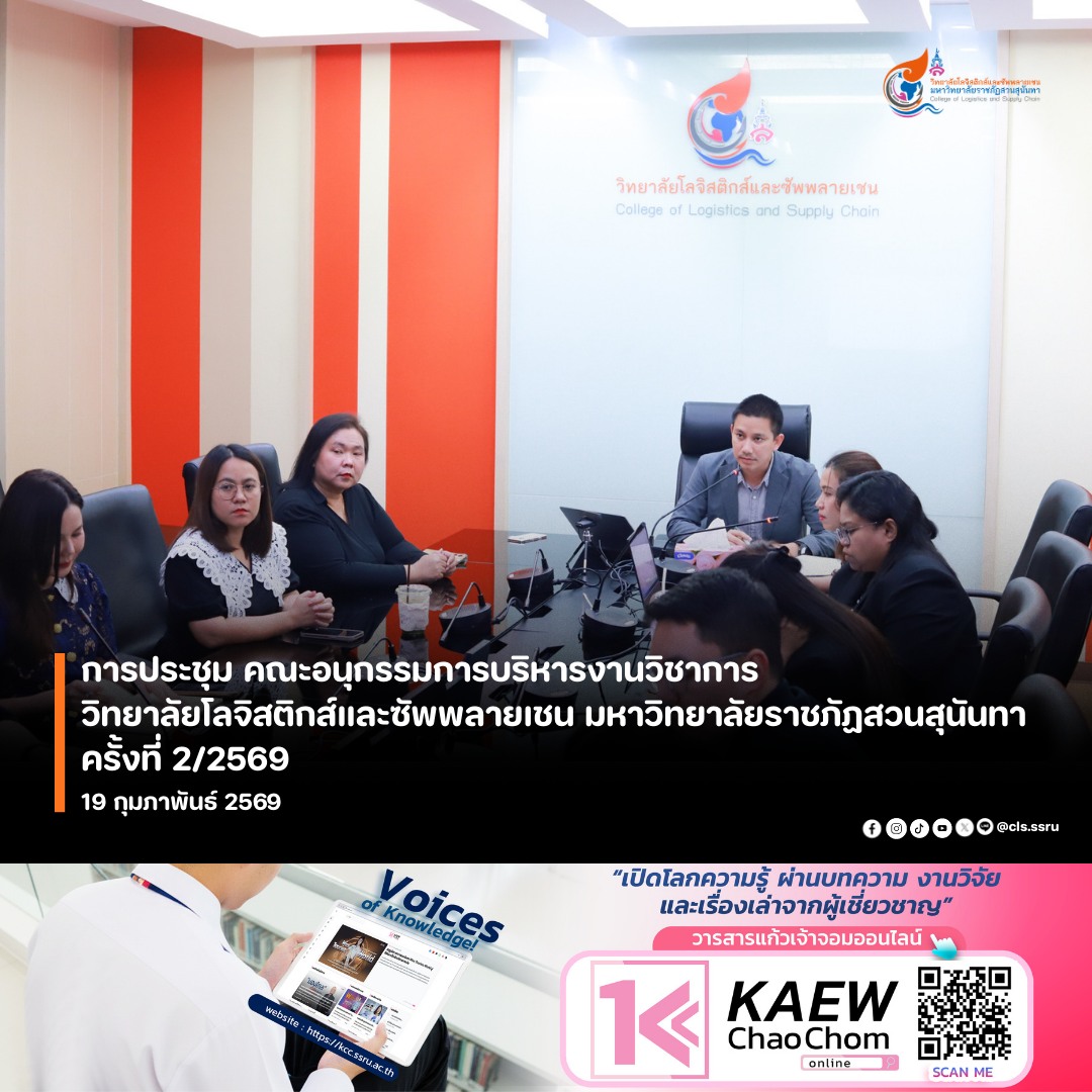 วิทยาลัยโลจิสติกส์และซัพพลายเชน มหาวิทยาลัยราชภัฏสวนสุนันทา จัดการประชุม คณะอนุกรรมการบริหารงานวิชาการ วิทยาลัยโลจิสติกส์และซัพพลายเชน มหาวิทยาลัยราชภัฏสวนสุนันทา ครั้งที่ 2/2569