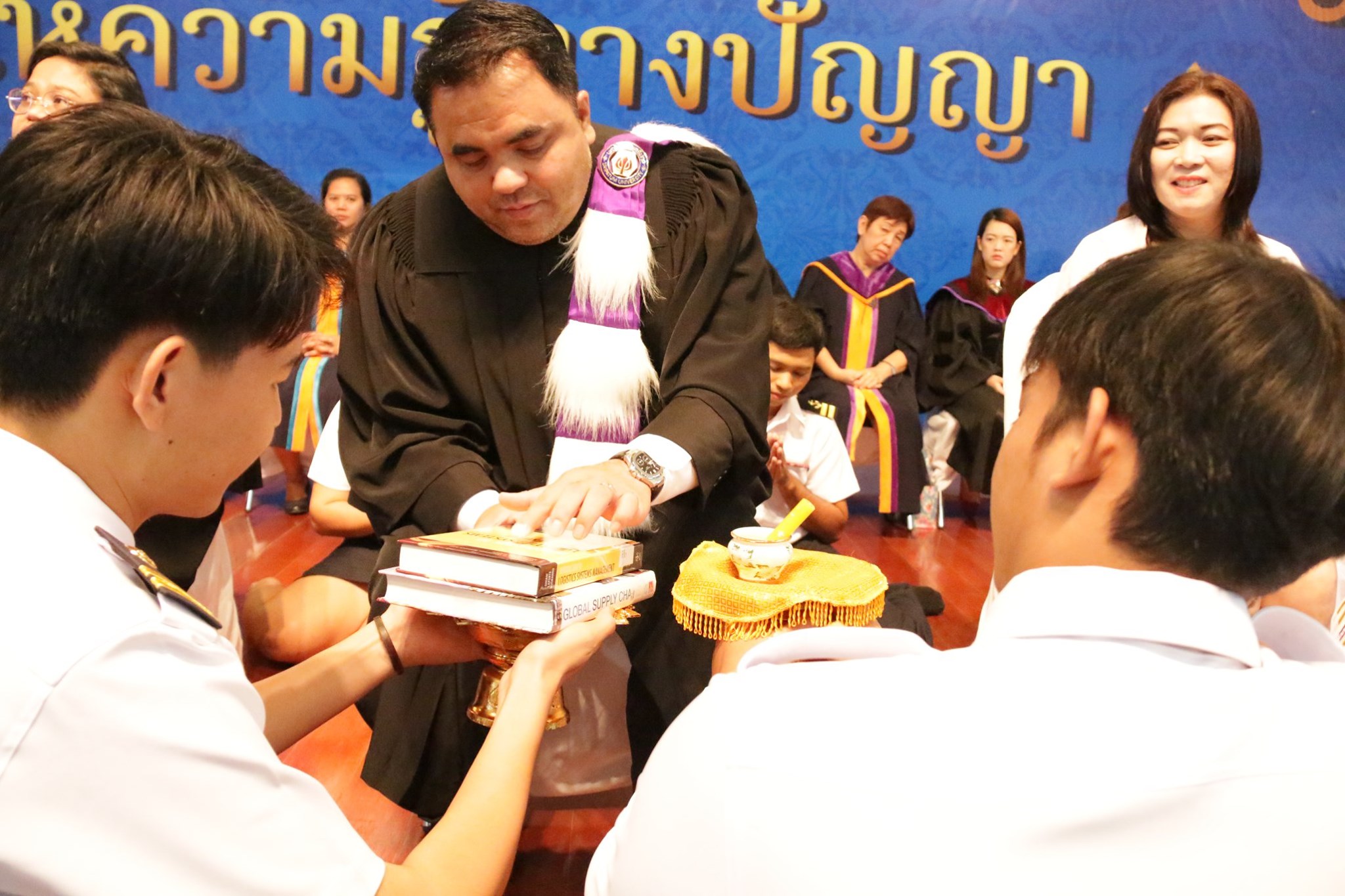 วิทยาลัยโลจิสติกส์และซัพพลายเชน มหาวิทยาลัยราชภัฏสวนสุนันทา จัดโครงการน้อมรำลึกพระคุณครู ผู้ให้ความรู้ทางปัญญา ประจำปีการศึกษา 2562 โดยมี ผศ.ดร.คมสัน โสมณวัตร คณบดีวิทยาลัยโลจิสติกส์และซัพพลายเชน มหาวิทยาลัยราชภัฏสวนสุนันทา เป็นประธานเจิมหนังสือ และให้โอวาทแก่นักศึกษา ถือเป็นโอกาสที่นักศึกษาใหม่ได้ฝากตัวเป็นศิษย์ต่อคณาจารย์ และได้แสดงออกถึงความเคารพ และระลึกถึงในพระคุณของคณาจารย์ที่จะประสิทธิ์ประสาทวิชาความรู้แก่ตนเอง ทั้งนี้ในพิธีได้มีการติดเข็มตราสัญลักษณ์วิทยาลัยฯให้แก่นักศึกษา ชั้นปีที่1 และมอบเกียรติบัตร ให้แก่นักศึกษาที่สร้างชื่อเสียงแก่วิทยาลัย ตลอดจนนักศึกษาดีเด่น ณ อาคารเรียนรวมอเนกประสงค์ มหาวิทยาลัยราชภัฏสวนสุนันทา ศูนย์การศึกษาจังหวัดนครปฐม