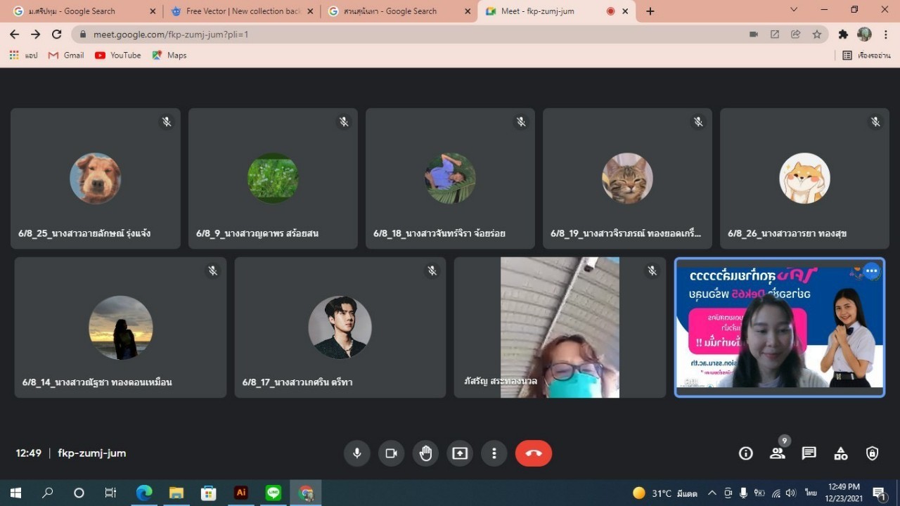 ภาพบรรยากาศกิจกรรมการลงพื้นที่แนะแนวนักเรียน ภายใต้โครงการประชาสัมพันธ์และแนะแนวนักเรียนมัธยมศึกษาปีที่ 6 นอกสถานที่ โดยทีมกิจการนักศึกษา ณ โรงเรียนกำแพงแสนวิทยา จังหวัดนครปฐม ในรูปแบบออนไลน์ผ่าน Google Meet