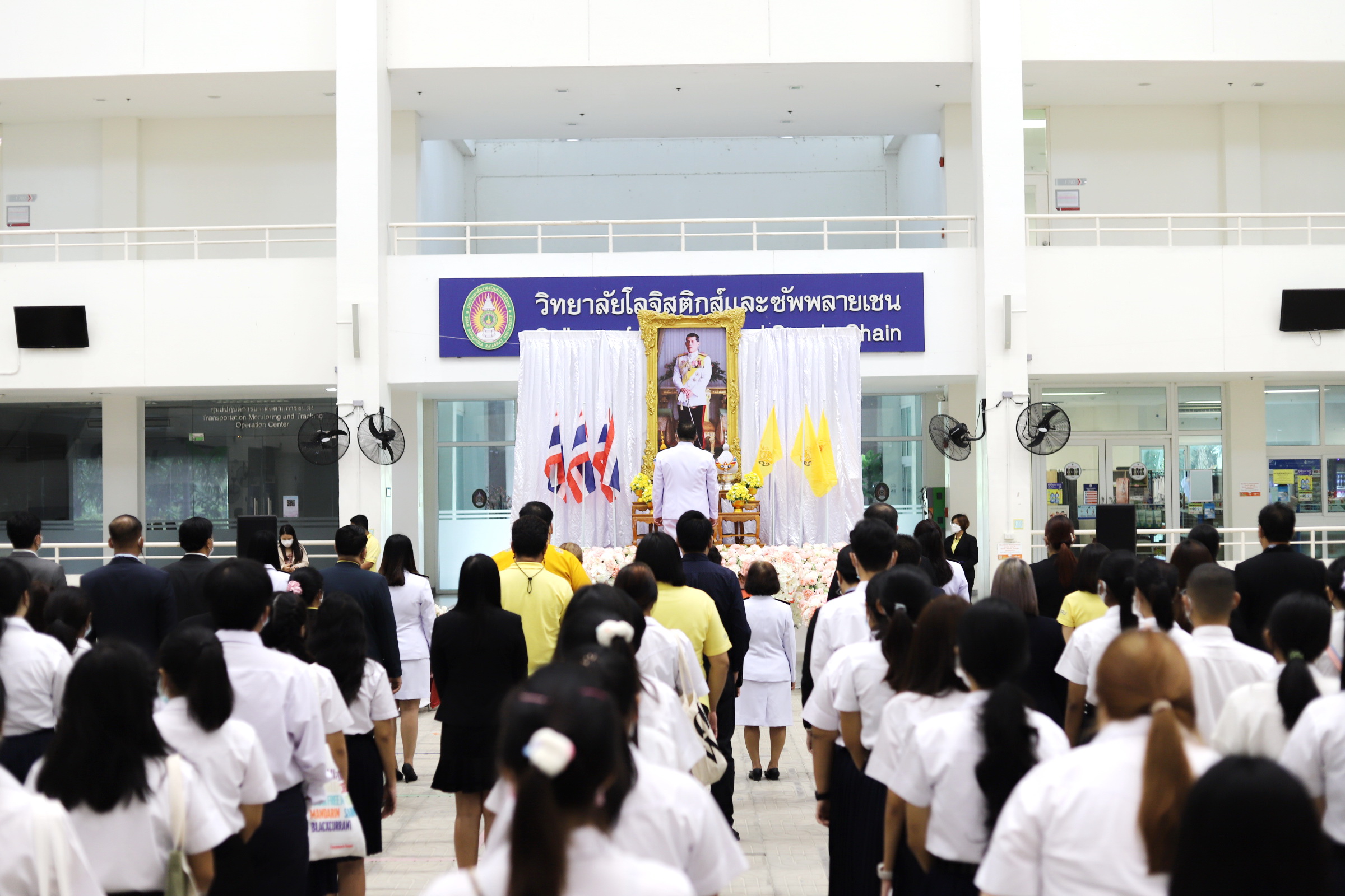 บุคลากรวิทยาลัยโลจิสติกส์และซัพพลายเชน ร่วมพิธีถวายพระพรชัยมงคลพระบาทสมเด็จพระปรเมนทรรามาธิบดีศรีสินทรมหาวชิราลงกรณ มหิศรภูมิพลราชวรางกูร กิติสิริสมบูรณอดุลยเดช สยามินทราธิเบศรราชวโรดม บรมนาถบพิตร พระวชิรเกล้าเจ้าอยู่หัว เนื่องในวโรกาสทรงเจริญพระชนมพรรษาครบ 70 พรรษา ประธานพิธีลงนามถวายพระพรชัยมงคล โดย ผู้ช่วยศาสตราจารย์ ดร.คมสัน โสมณวัตร รองอธิการบดีวิทยาเขตนครปฐม ณ บริเวณโถงอาคารวิทยาลัยโลจิสติกส์และซัพพลายเชน มหาวิทยาลัยราชภัฏสวนสุนันทา วิทยาเขตนครปฐม