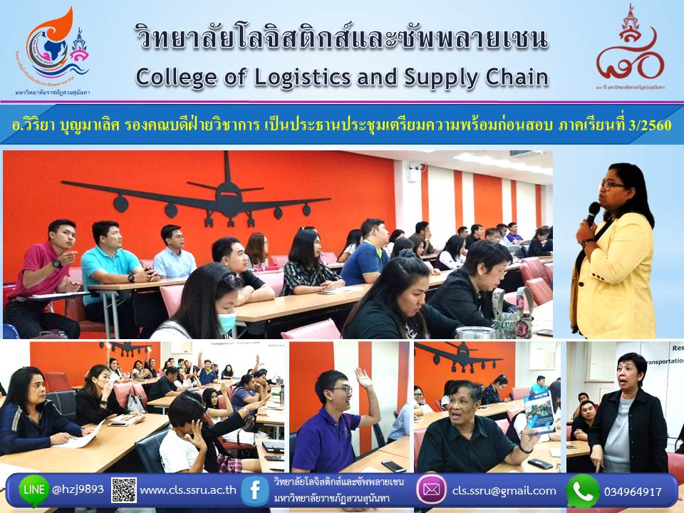 อ.วิริยา บุญมาเลิศ รองคณบดีฝ่ายวิชาการ เป็นประธานประชุมเตรียมความพร้อมก่อนสอบ ภาคเรียนที่ 3/2560