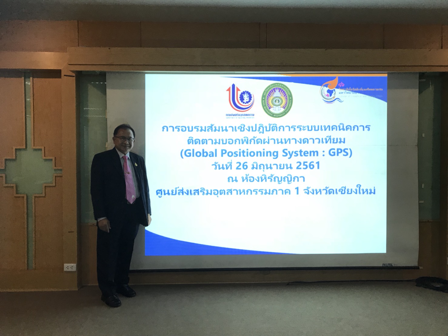 วันอังคารที่ 26 มิถุนายน 2561 ได้มีการจัดกิจกรรมอบรมสัมมนาเชิงปฏิบัติการระบบบอกพิกัดผ่านทางดาวเทียม(global Positioning System:GPS) ให้กับผู้ประกอบการ ณ ห้องหิรัญญิกา ศูนย์ส่งเสริมอุตสาหกรรมภาค 1 จังหวัดเชียงใหม่ โดยมีดร.จักรพรรณ คงธนะ รองผู้อำนวยการสถาบันวิจัยและบริการวิชาการด้านโลจิสติกส์และซัพพลายเชน อาจารย์สุวัฒน์ นวลขาว รองคณบดีฝ่ายบริหาร และทีมที่ปรึกษาโครงการ วิทยาลัยโลจิสติกส์และซัพพลายดำเนินกิจกรรมอบรมดังกล่าว