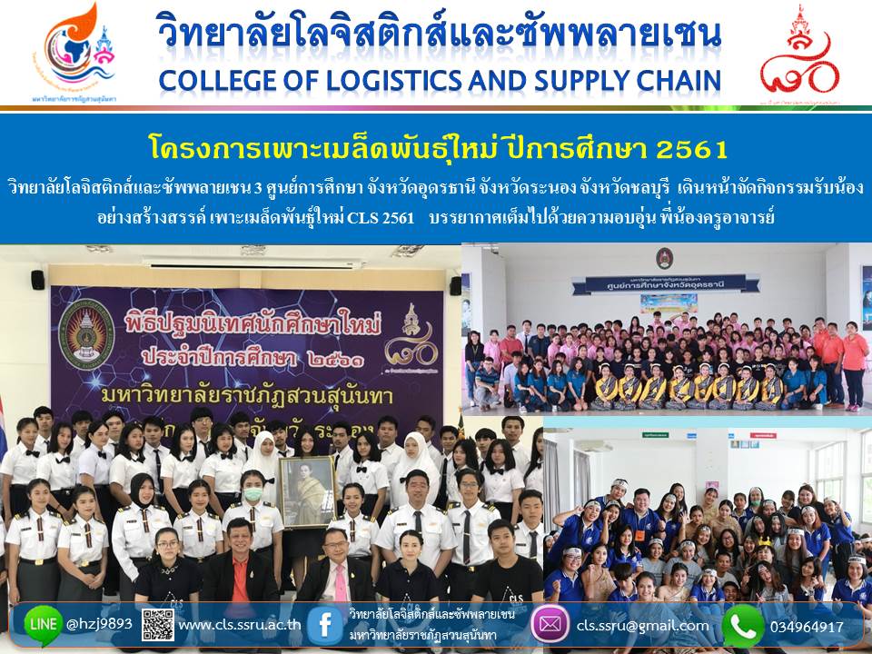 ฝ่ายกิจการนักศึกษา วิทยาลัยโลจิสติกส์และซัพพลายเชน 3 ศูนย์การศึกษา จังหวัดอุดรธานี จังหวัดระนอง จังหวัดชลบุรี เดินหน้าจัดกิจกรรมรับน้องอย่างสร้างสรรค์ เพาะเมล็ดพันธุ์ใหม่ CLS 2561 บรรยากาศเต็มไปด้วยความอบอุ่น พี่น้องครูอาจารย์