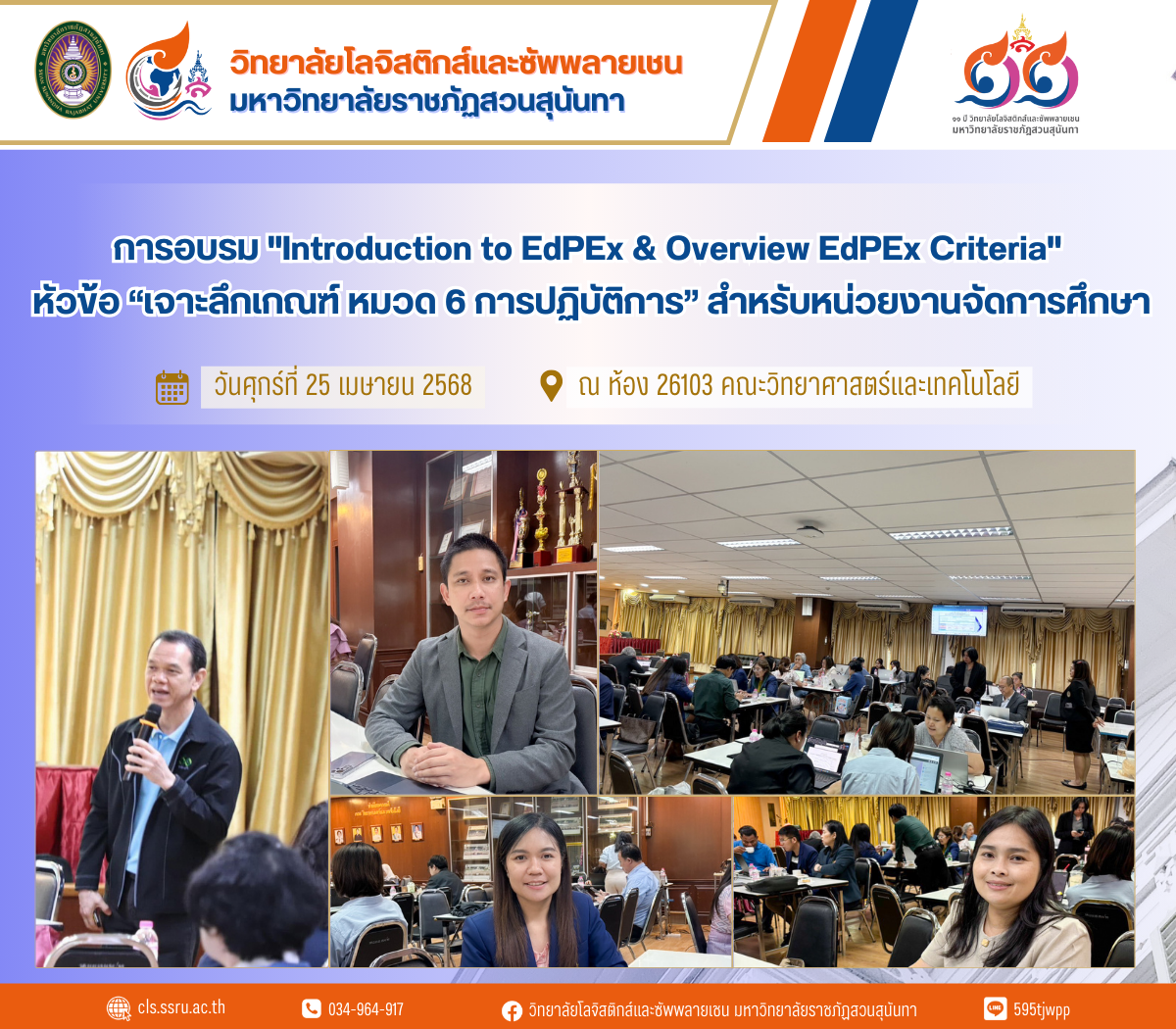 ผู้บริหาร บุคลากร วิทยาลัยโลจิสติกส์และซัพพลายเชน เข้าร่วมอบรม "Introduction to EdPEx & Overview EdPEx Criteria" หัวข้อ “เจาะลึกเกณฑ์ หมวด 6 การปฏิบัติการ” สำหรับหน่วยงานจัดการศึกษา
