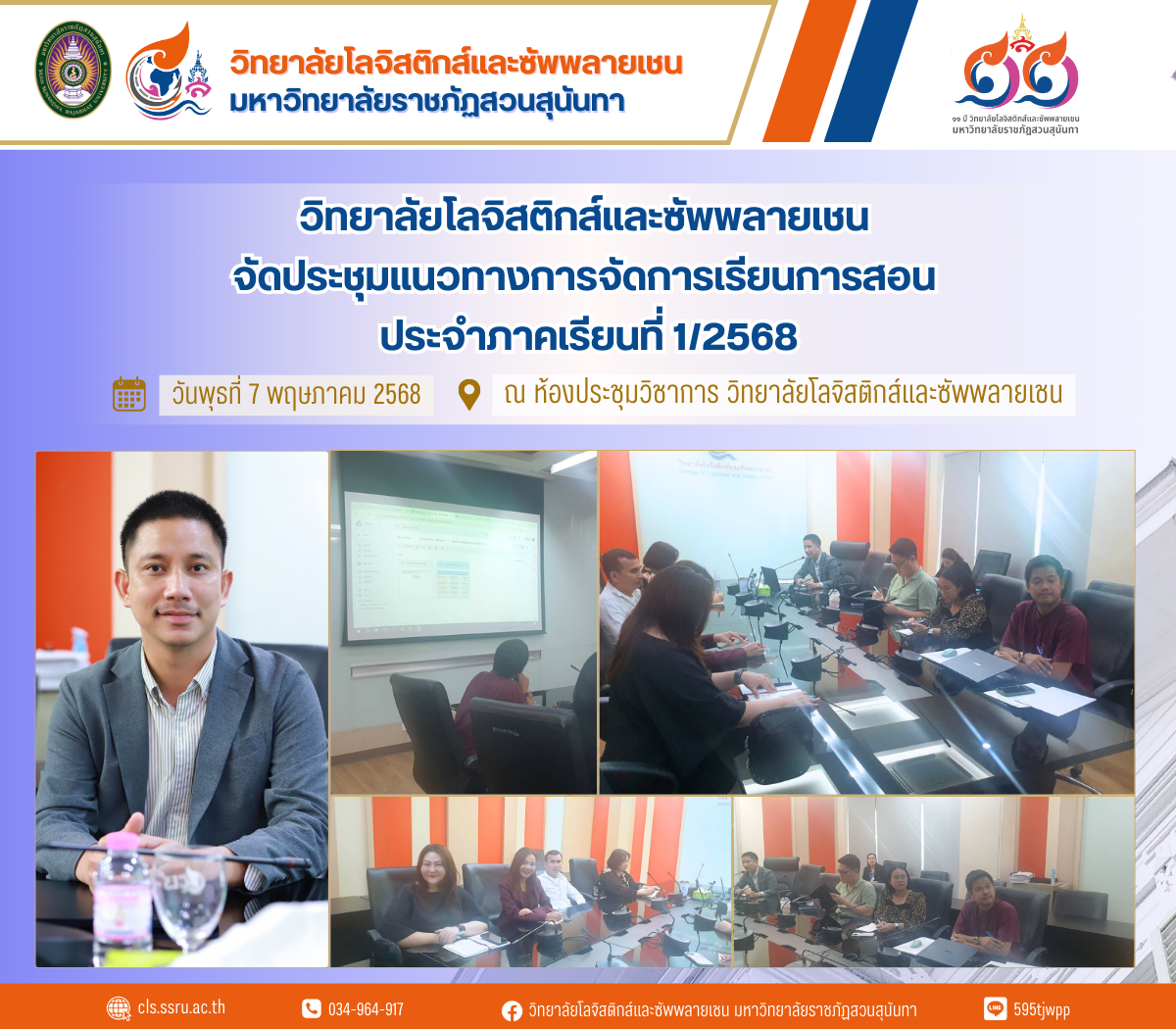 วิทยาลัยโลจิสติกส์และซัพพลายเชน มหาวิทยาลัยราชภัฏสวนสุนันทา นำโดย ดร.ลำไผ่ ตระกูลสันติ รองคณบดีฝ่ายวิชาการ พร้อมด้วยคณาจารย์หัวหน้าสาขา ร่วมประชุม "แนวทางการจัดการเรียนการสอน ประจำภาคเรียนที่ 1/2568"