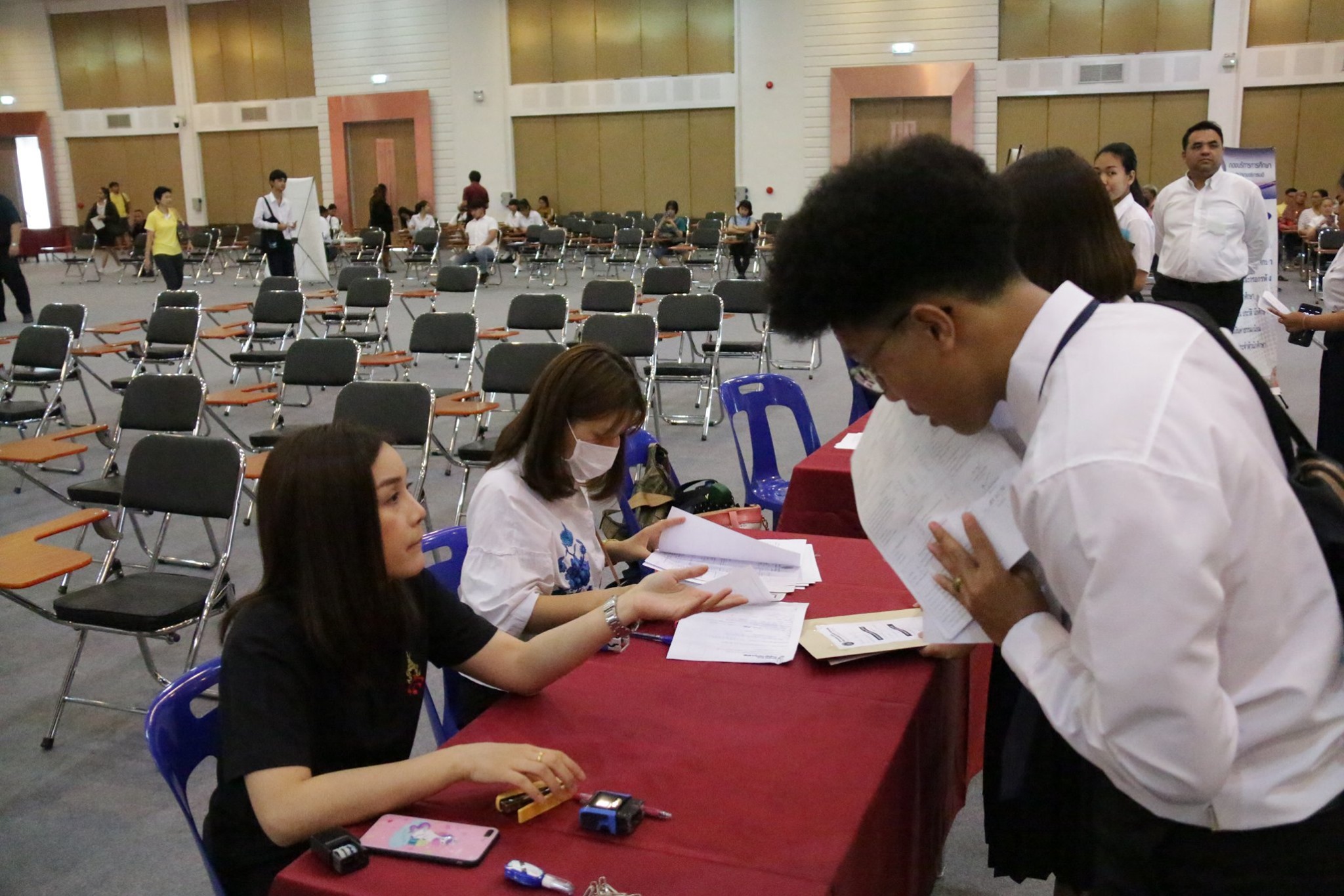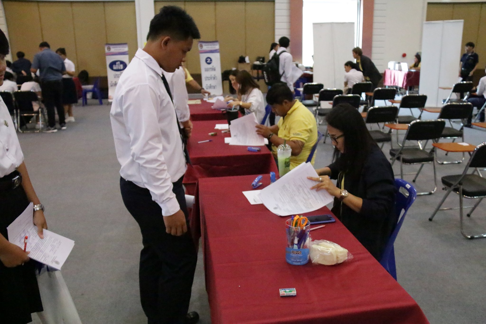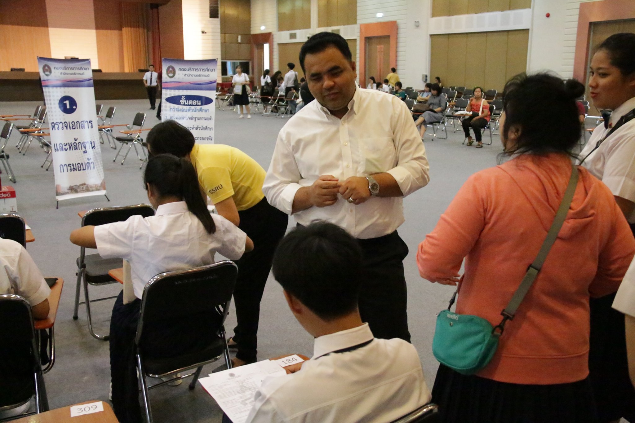 บรรยากาศการรับมอบตัวนักศึกษาระดับปริญญาตรี วิทยาลัยโลจิสติกส์และซัพพลายเชน ปีการศึกษา 2562 (รอบที่ 5) ณ อาคารอเนกประสงค์ มหาวิทยาลัยราชภัฏสวนสุนันทา ศูนย์การศึกษาจังหวัดนครปฐม โดยมีคณาจารย์ เจ้าหน้าที่ คอยให้คำแนะนำ และมีรุ่นพี่นักศึกษาจากสาขาวิชาต่างๆ รอให้การต้อนรับด้วยความอบอุ่น