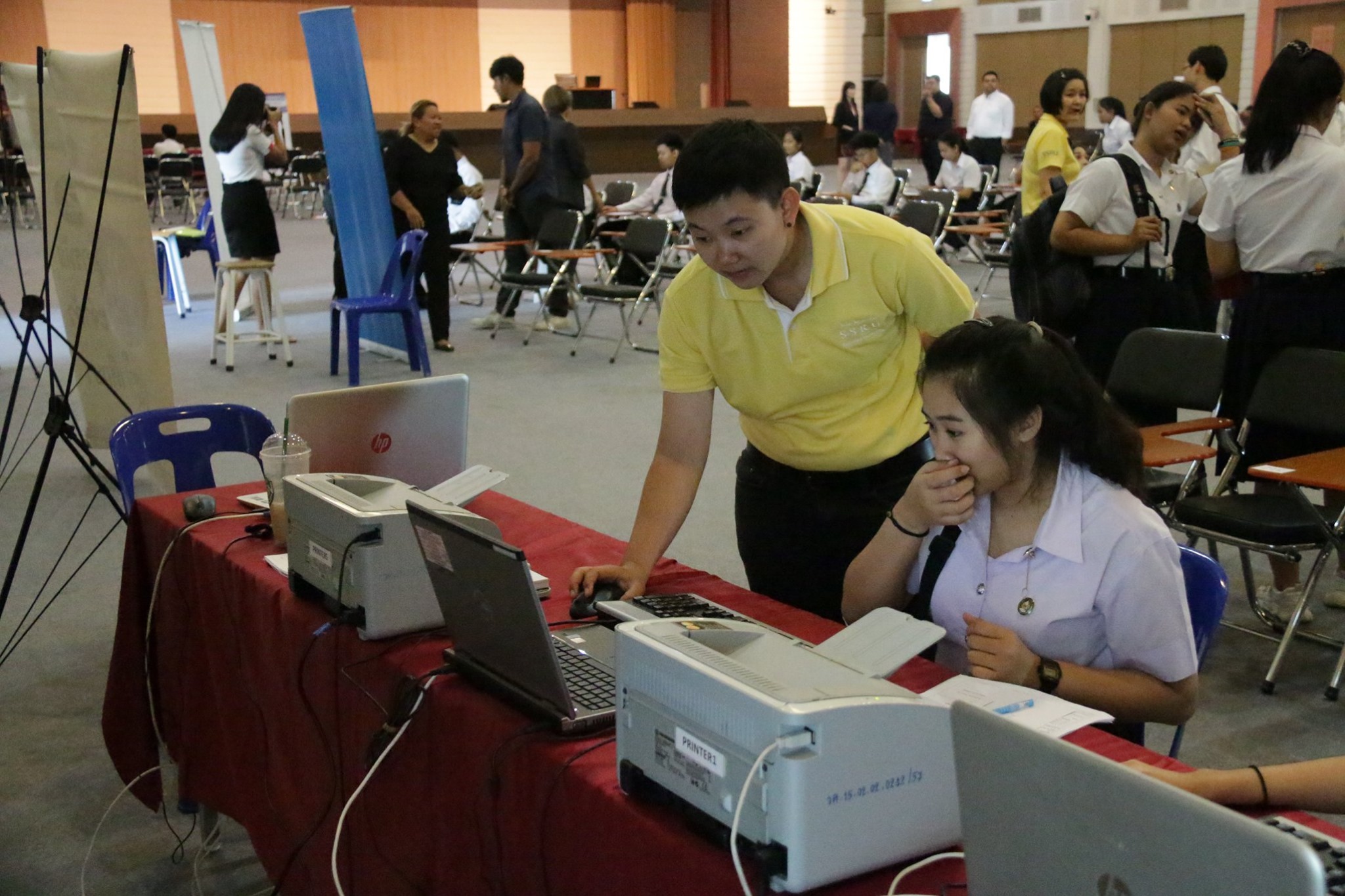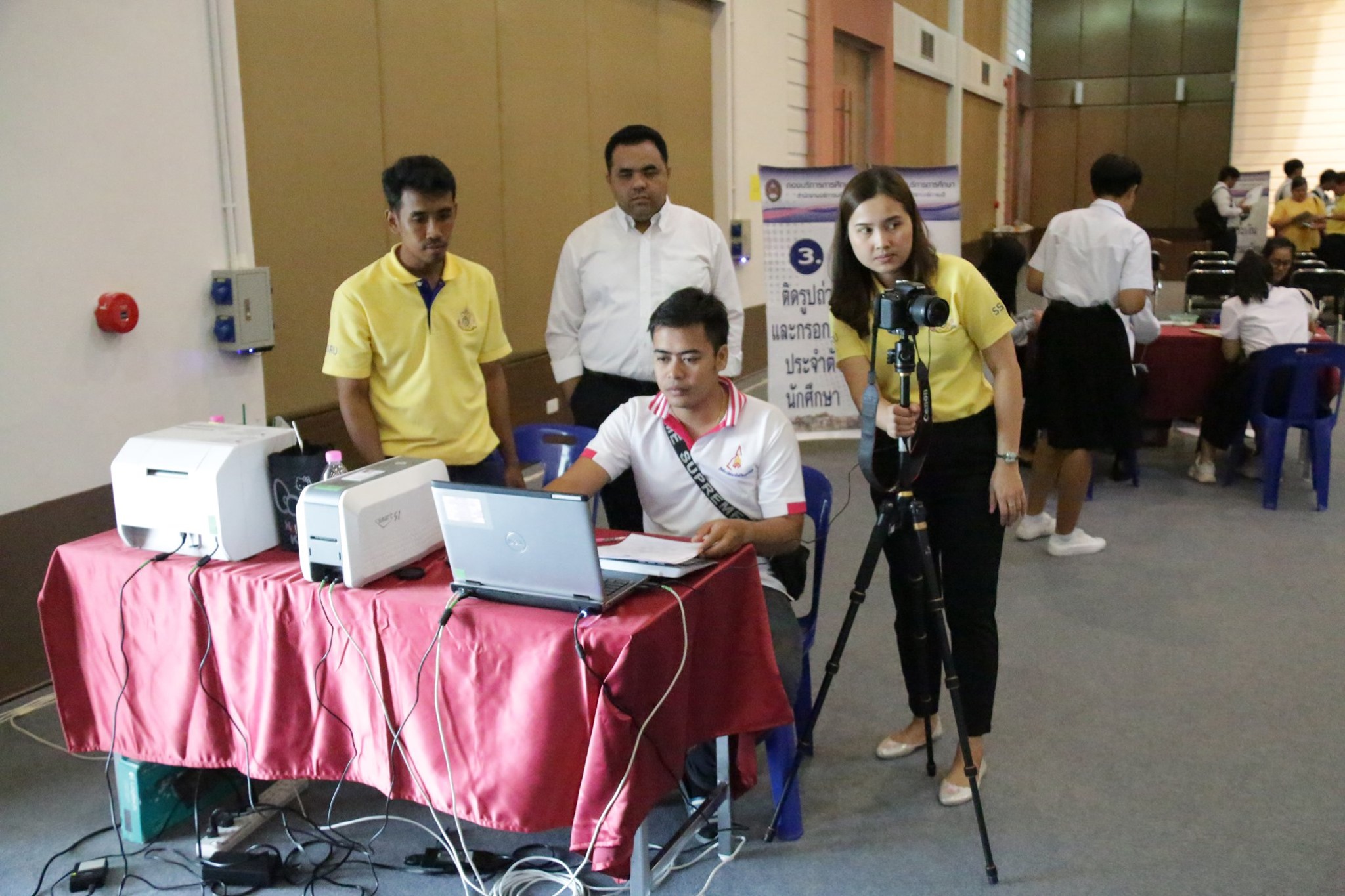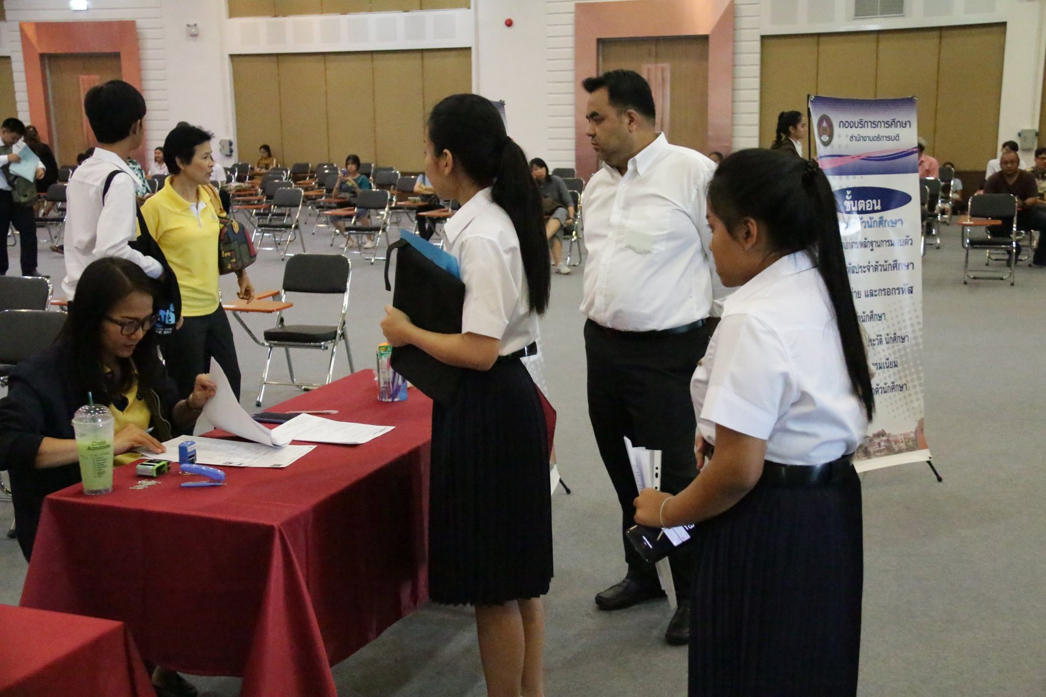 บรรยากาศการรับมอบตัวนักศึกษาระดับปริญญาตรี วิทยาลัยโลจิสติกส์และซัพพลายเชน ปีการศึกษา 2562 (รอบที่ 5) ณ อาคารอเนกประสงค์ มหาวิทยาลัยราชภัฏสวนสุนันทา ศูนย์การศึกษาจังหวัดนครปฐม โดยมีคณาจารย์ เจ้าหน้าที่ คอยให้คำแนะนำ และมีรุ่นพี่นักศึกษาจากสาขาวิชาต่างๆ รอให้การต้อนรับด้วยความอบอุ่น