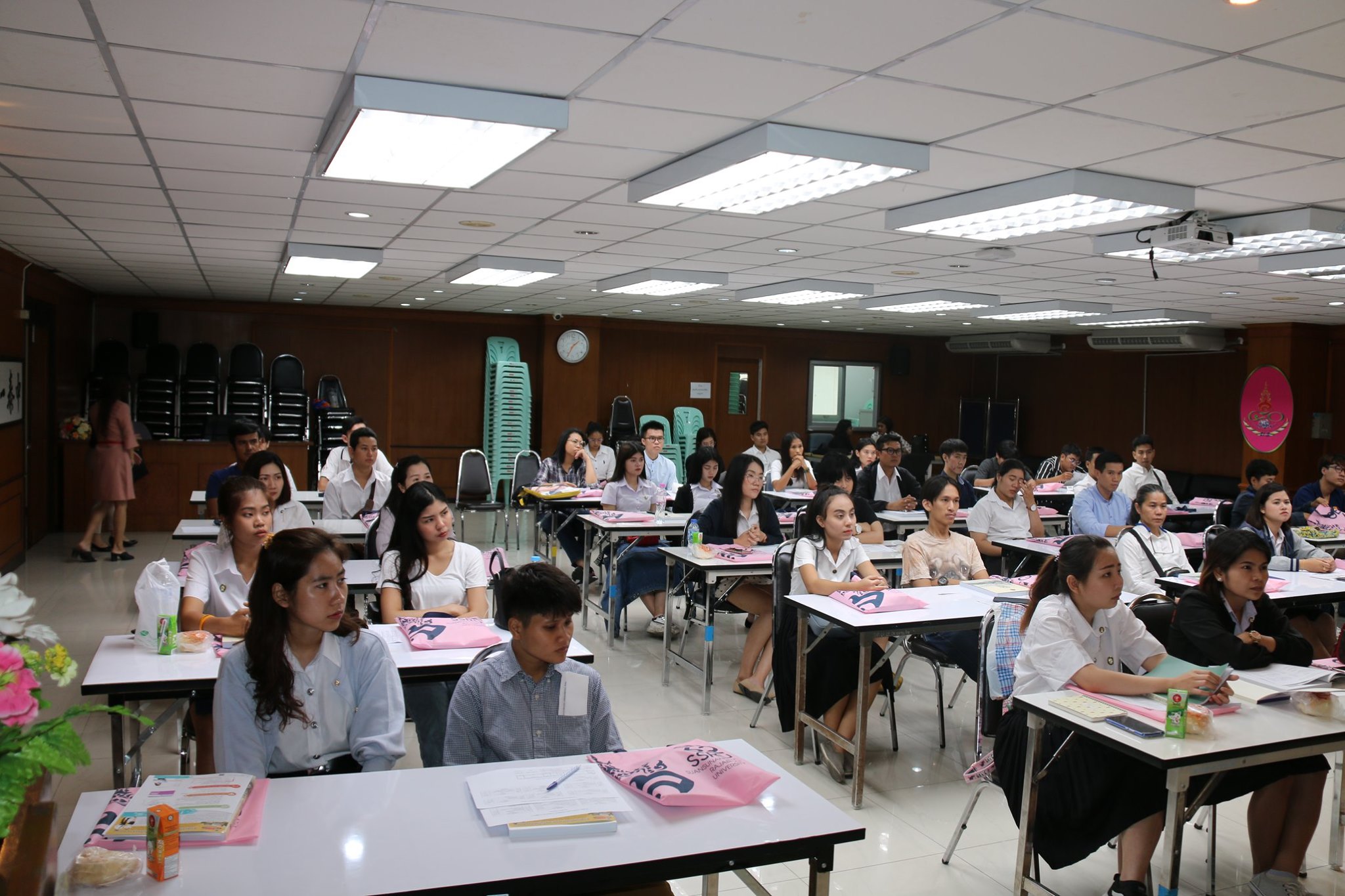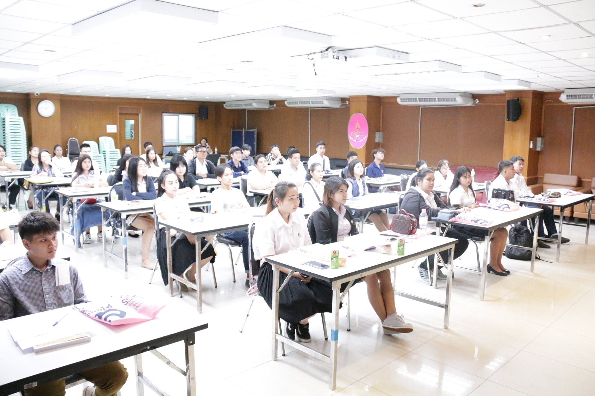 อาจารย์สุวัฒน์ นวลขาว รักษาราชการแทนคณบดีวิทยาลัยโลจิสติกส์และซัพพลายเชน และอาจารย์ ดร.วิริยา บุญมาเลิศ รองคณบดีฝ่ายวิชาการ พร้อมด้วยคณาจารย์ หลักสูตรบริหารธุรกิจบัณฑิต สาขาวิชาการจัดการโลจิสติกส์ ภาคพิเศษ ปฐมนิเทศนักศึกษาใหม่ ประจำปีการศึกษา 2562 ณ ห้องประชุมนิภานภดล คณะมนุษย์ศาสตร์และสังคมศาสตร์ มหาวิทยาลัยราชภัฏสวนสุนันทา