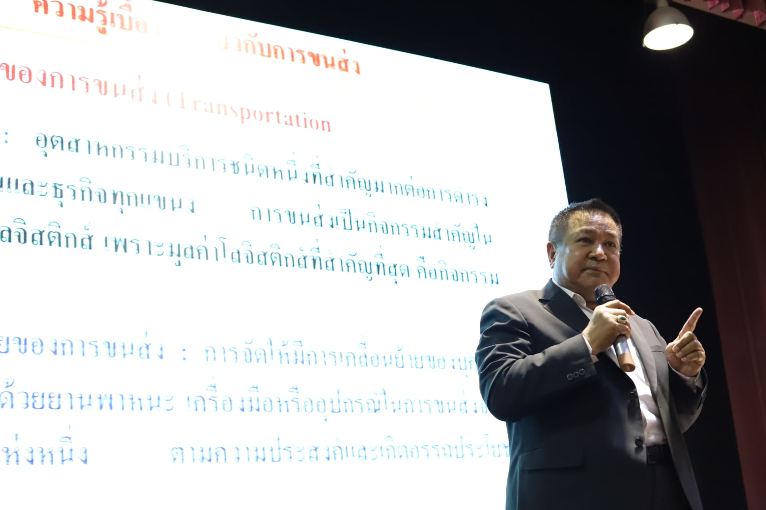 หน้าหลัก > ข่าว > ข่าวกิจกรรม > อาจารย์สุวัฒน์ นวลขาว รองคณบดีฝ่ายบริหาร กล่าวต้อนรับวิทยากรและกล่าวเปิดการบรรยายเรื่องความรู้เบื้องต้นการจัดการการขนส่ง