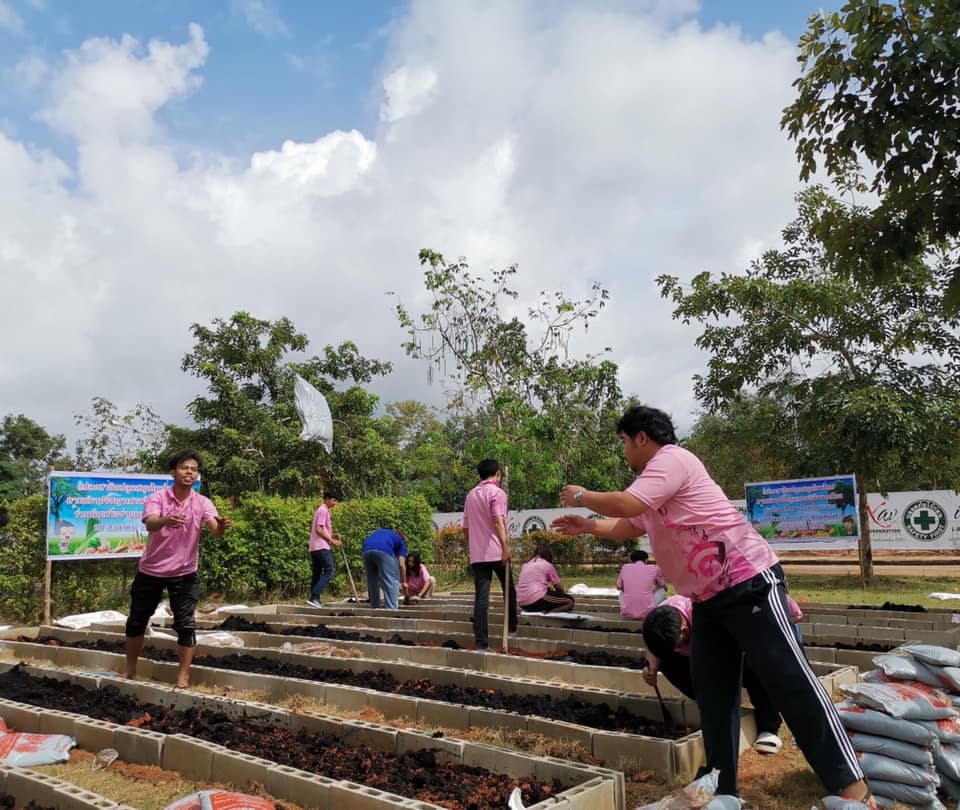 นักศึกษาสาขาวิชาการจัดการโลจิสติกส์ วิทยาลัยโลจิสติกส์และซัพพลายเชน ร่วมกันเตรียมแปลงดินสำหรับการปลูกสมุนไพร ในแปลงสาธิตปลูกสมุนไพรตามแนวปรัชญาเกษตรพอเพียงร่วมกับเครือข่ายความร่วมมือ ณ ศูนย์การศึกษาจังหวัดระนอง มหาวิทยาลัยราชภัฏสวนสุนันทา