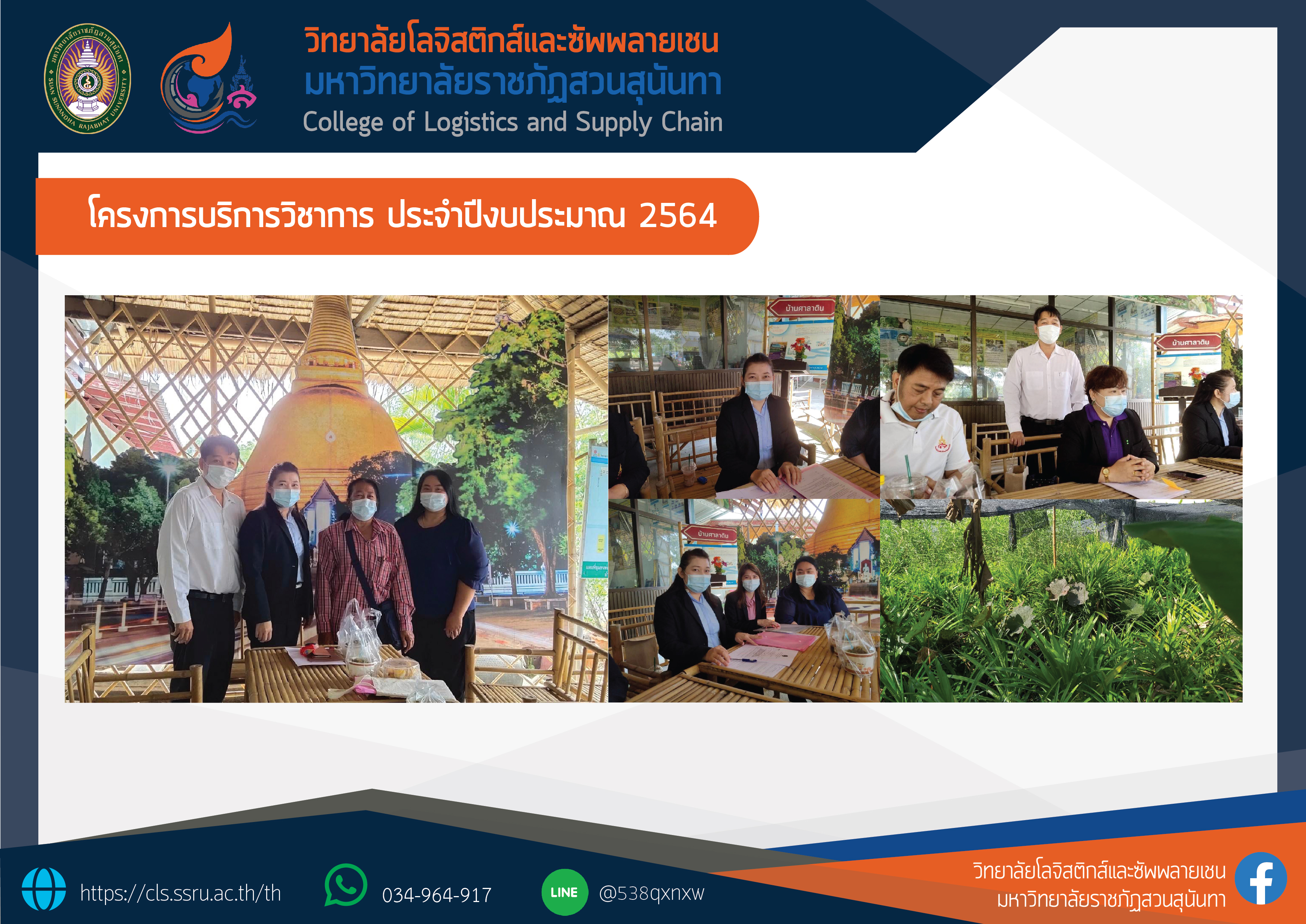 วันที่ 8 มกราคม 2564 นำทีมโดย อาจารย์ ดร.สุดารัตน์ พิมลรัตนกานต์ รองคณบดีฝ่ายแผนงานและประกันคุณภาพ พร้อมคณาจารย์วิทยาลัยโลจิสติกส์ฯ เข้าเยี่ยมชมพบปะผู้นำชุมชน ณ บ้านศาลาดิน จังหวัดนครปฐม ในการร่วมกันสร้างผลิตภัณฑ์ให้มีชื่อเสียงจากผลผลิตประจำท้องถิ่นด้วยภูมิปัญญาชาวบ้านที่สร้างสรรค์ผลิตภัณฑ์จาก "ใบเตย" พืชผลผลิตทางการเกษตร ตามโครงการการพัฒนาเศรษฐกิจฐานรากให้เข้มแข็งอย่างแท้จริง เพื่อสร้างรายได้และชีวิตความเป็นอยู่ที่ดีของชุมชนบ้านศาลาดิน จังหวัดนครปฐม