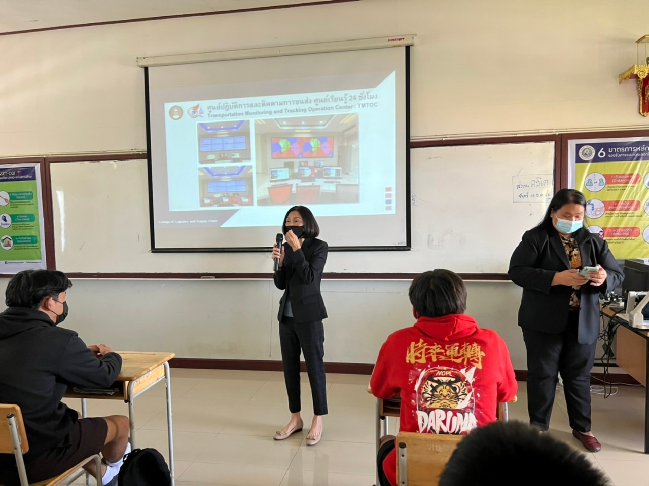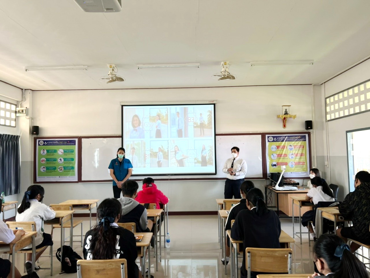 ภาพบรรยากาศกิจกรรมการลงพื้นที่แนะแนวนักเรียนภายใต้โครงการประชาสัมพันธ์และแนะแนวนักเรียนมัธยมศึกษาปีที่ 6 นอกสถานที่ โดยทีมกิจการนักศึกษา ร่วมกับตัวแทนอาจารย์จากแขนงวิชาธุรกิจพาณิชยนาวี แขนงวิชาการจัดการการขนส่ง ณ โรงเรียนภัทรญาณวิทยา จังหวัดนครปฐม