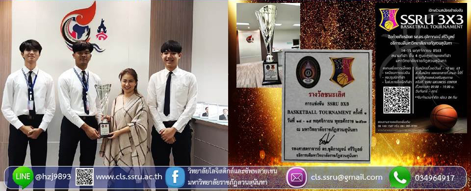 อ.ดร.ฉัตรรัตน์ โหตระไวศยะ รักษาราชการแทนคณบดีวิทยาลัยโลจิสติกส์และซัพพลายเชน แสดงความยินกับนักศึกษา สาขาวิชา การจัดการโลจิสติกส์ ที่ได้รับรางวัลชนะเลิศ ในการเข้าร่วมแข่งขัน BASKETBALL TOURNAMENT SSRU 3X3 ชิงถ้วยเกียรติยศ รศ.ดร.ชุติกาญจน์ ศรีวิบูลย์ อธิการบดีมหาวิทยาลัยราชภัฏสวนสุนันทา ระหว่างวันที่ 14-15 พ.ย.2563 ณ สนามกีฬา ชั้น 4 ศูนย์ สุขภาพและกีฬา มหาวิทยาลัยราชภัฏสวนสุนันทา