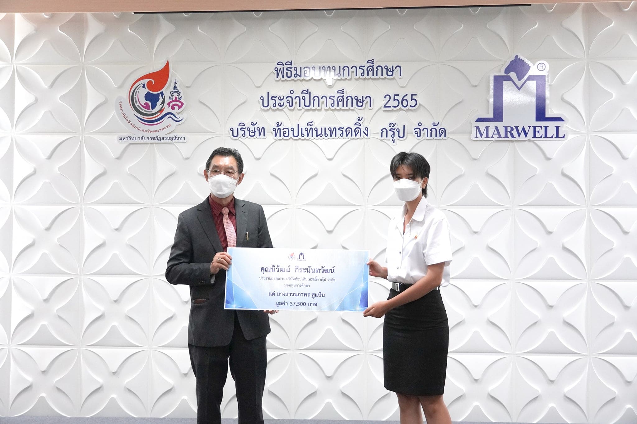 วันที่ 26 เมษายน 2565 วิทยาลัยโลจิสติกส์และซัพพลายเชน นำโดย ดร.ฉัตรรัตน์ โหตระไวศยะ คณบดีวิทยาลัยฯ พร้อมผู้บริหาร เข้าร่วมพิธีมอบทุนการศึกษา ประจำปีการศึกษา 2565 จากบริษัท ท้อปเท็นเทรดดิ้งกรุ๊ป จำกัด โดยมี ผศ.ดร.คมสัน โสมณวัตร รองอธิการบดีวิทยาเขตนครปฐม เป็นประธานกล่าวเปิดงาน และได้รับเกียรติจาก คุณนิวัฒน์ กิระนันทวัฒน์ ประธานกรรมการ บริษัท ท้อปเท็นเทรดดิ้งกรุ๊ป จำำกัด เป็นผู้มอบทุนการศึกษา ให้แก่ นางสาวสิริรัตน์ จิตรจารุ และ นางสาวนภาพร สูแป้น นักศึกษาวิทยาลัยโลจิสติกส์และซัพพลายเชน ณ ห้องประชุมแก้วเจ้าจอม ชั้น 4 วิทยาลัยนิเทศศาสตร์