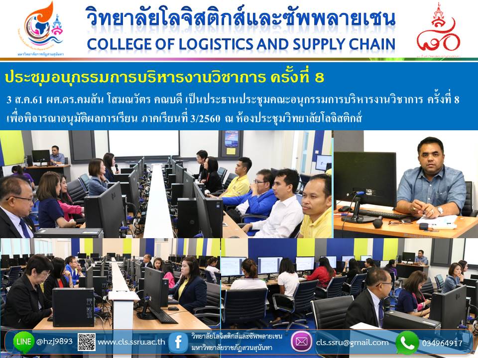 3 สค 61 ผศ.ดร.คมสันโสมณวัตร คณบดีวิทยาลัยโลจิสติกส์และซัพพลายเชน เป็นประธานประชุมคณะอนุกรรมการบริหารงานวิชาการ ครั้งที่ 8