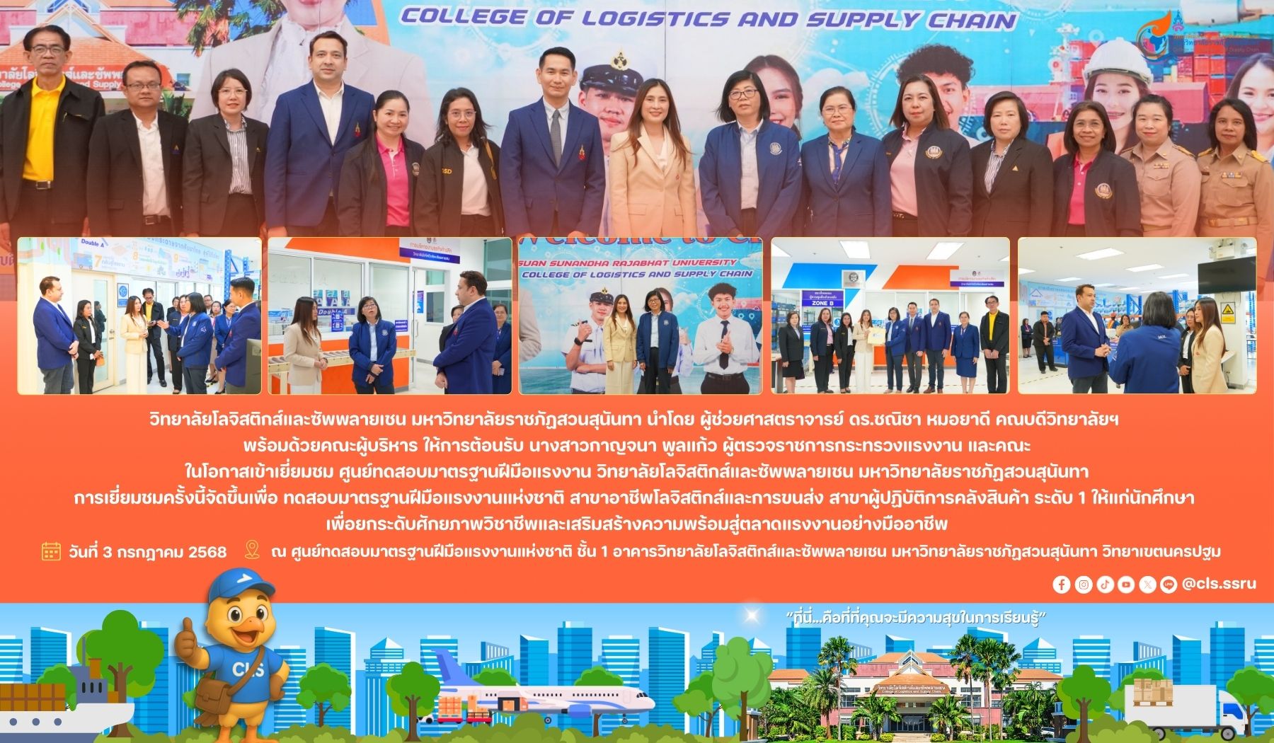 ในโอกาสเข้าเยี่ยมชม ศูนย์ทดสอบมาตรฐานฝีมือแรงงาน วิทยาลัยโลจิสติกส์และซัพพลายเชน มหาวิทยาลัยราชภัฏสวนสุนันทา