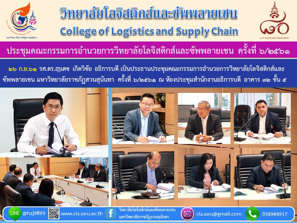 ๒๖ ก.ย.๖๑ รศ.ดร.ฤๅเดช เกิดวิชัย อธิการบดี เป็นประธานประชุมคณะกรรมการอำนวยการวิทยาลัยโลจิสติกส์และ