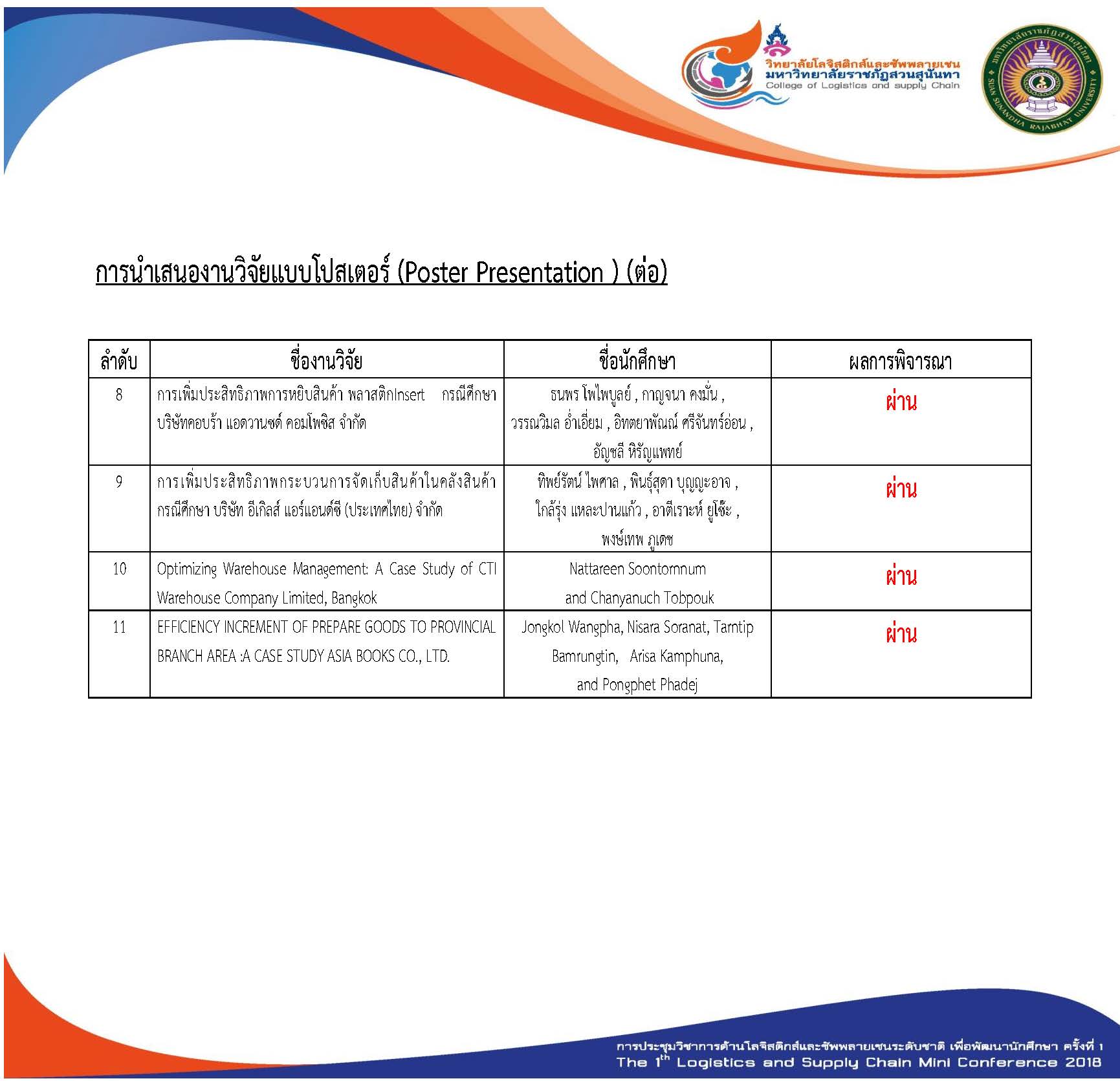 > ประกาศผลการพิจารณาบทความการประชุมวิชาการ