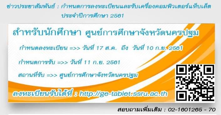 > กำหนดการลงทะเบียนและรับเครื่องคอมพิวเตอร์แท็บเล็ต ประจำปีการศึกษา 2561