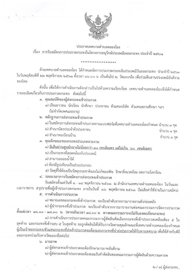 ร่วมประกวดกระทงประเภทสวยงาม ประเพณีลอยกระทง ประจำปี 2561 ณ วัดมะเกลือ เทศบาลตำบลคลองโยง