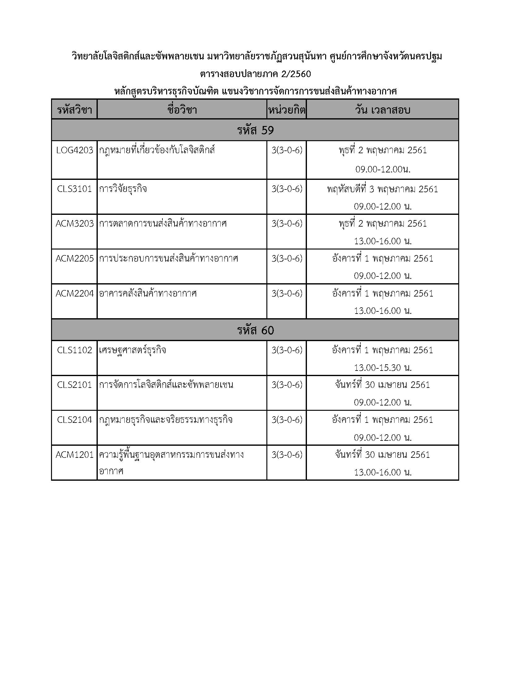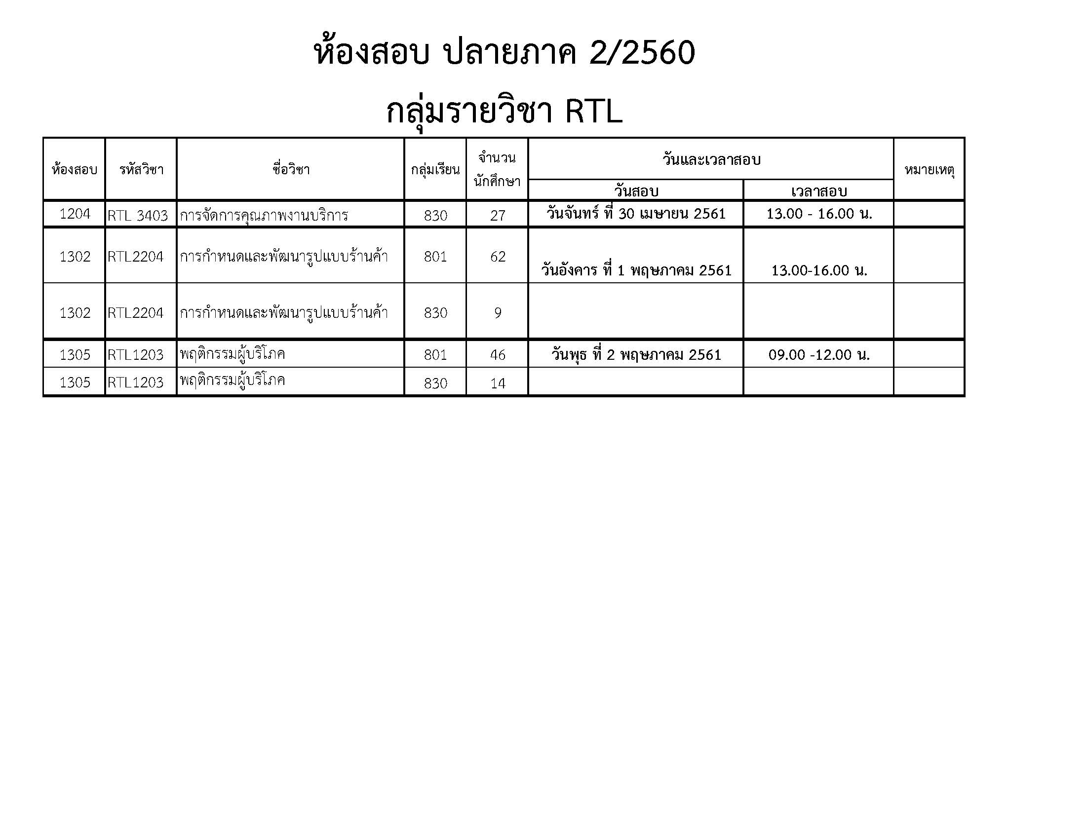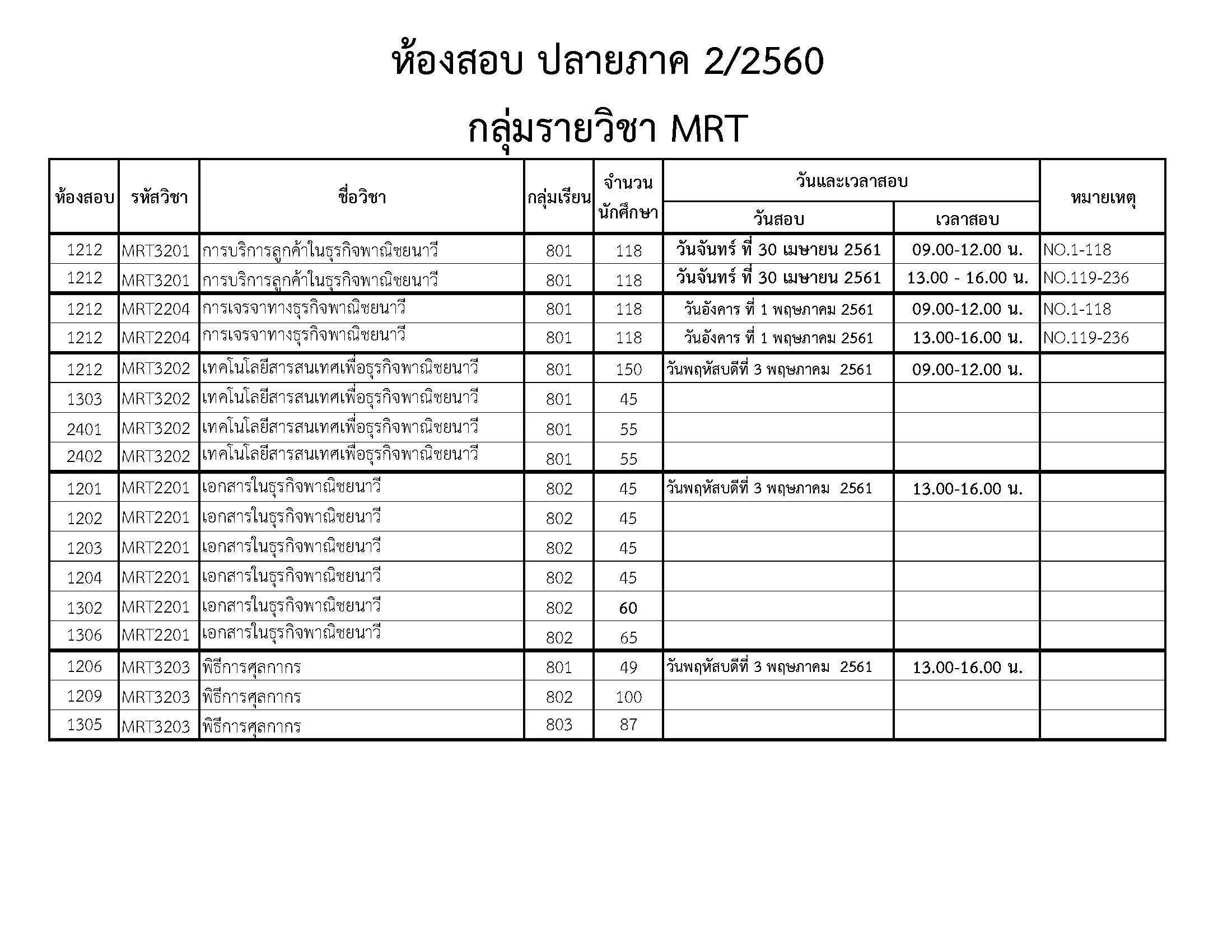 ประกาศ ตารางสอบและห้องสอบ ปลายภาค 2/2560