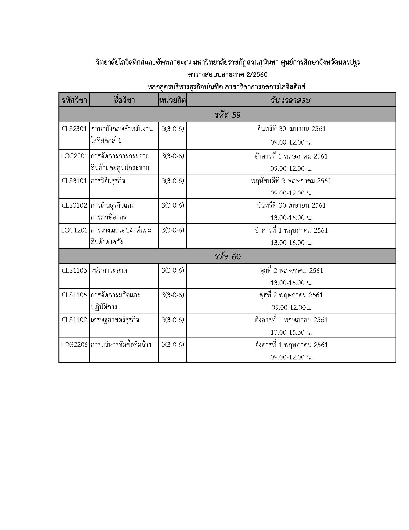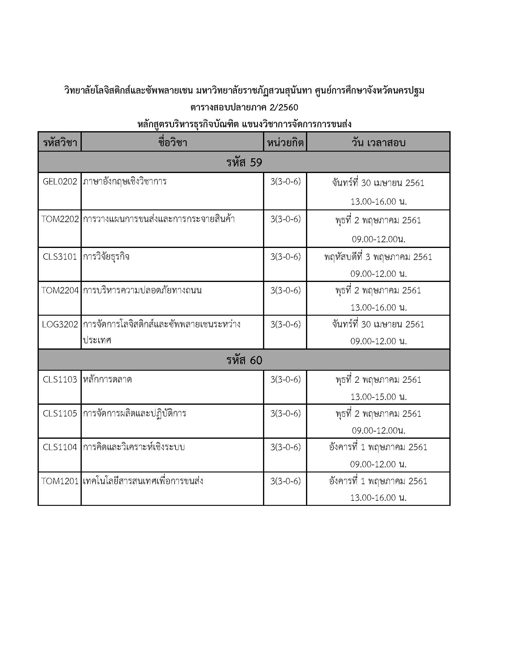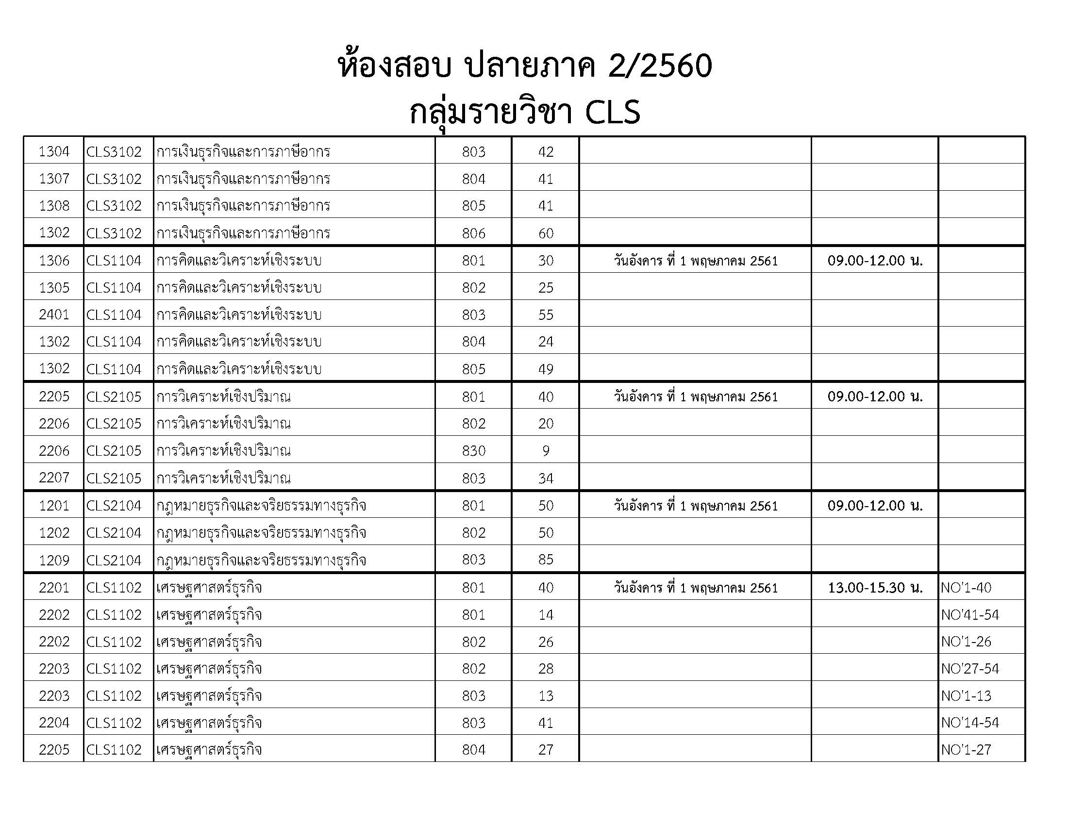 ประกาศ ตารางสอบและห้องสอบ ปลายภาค 2/2560